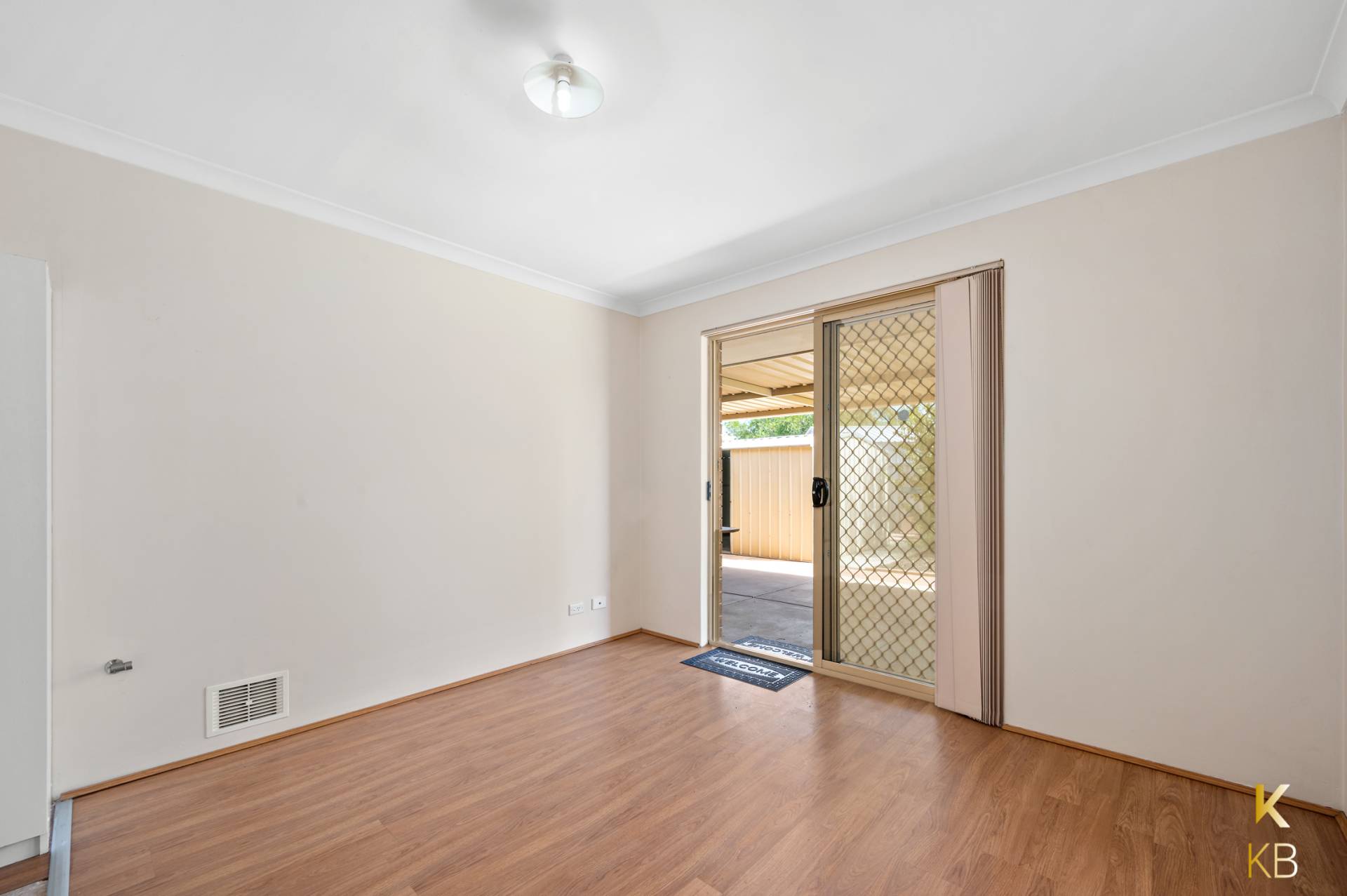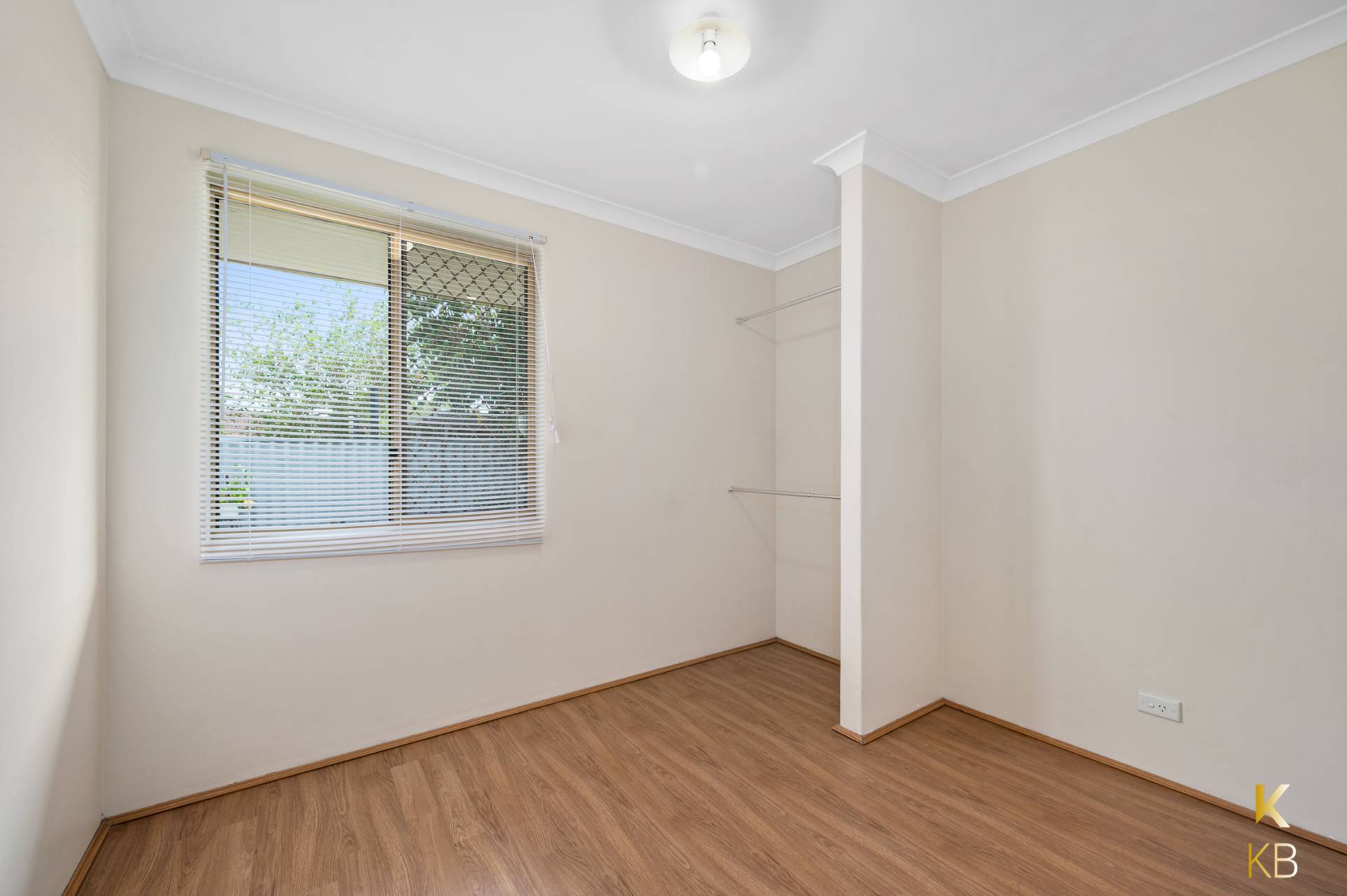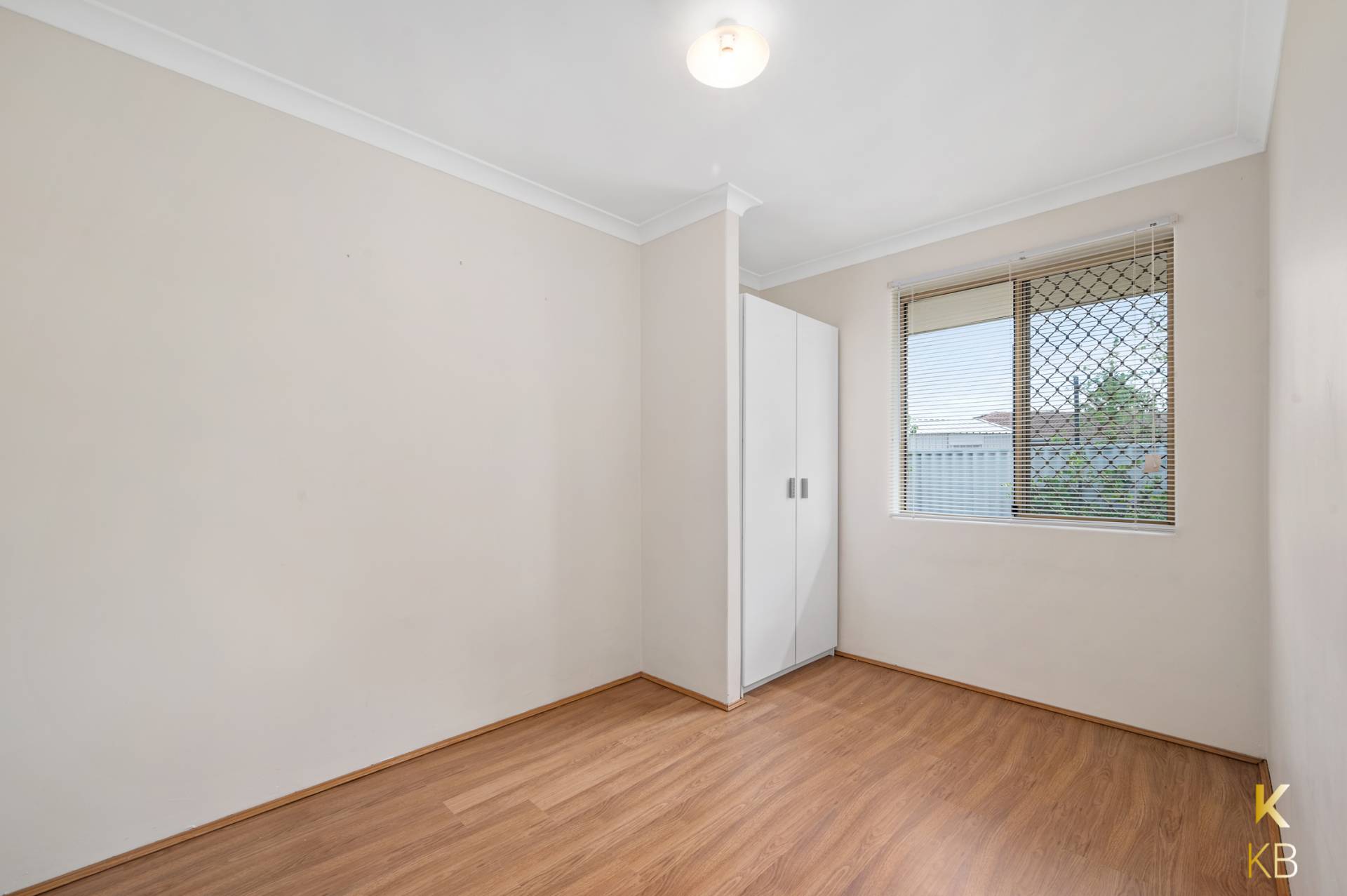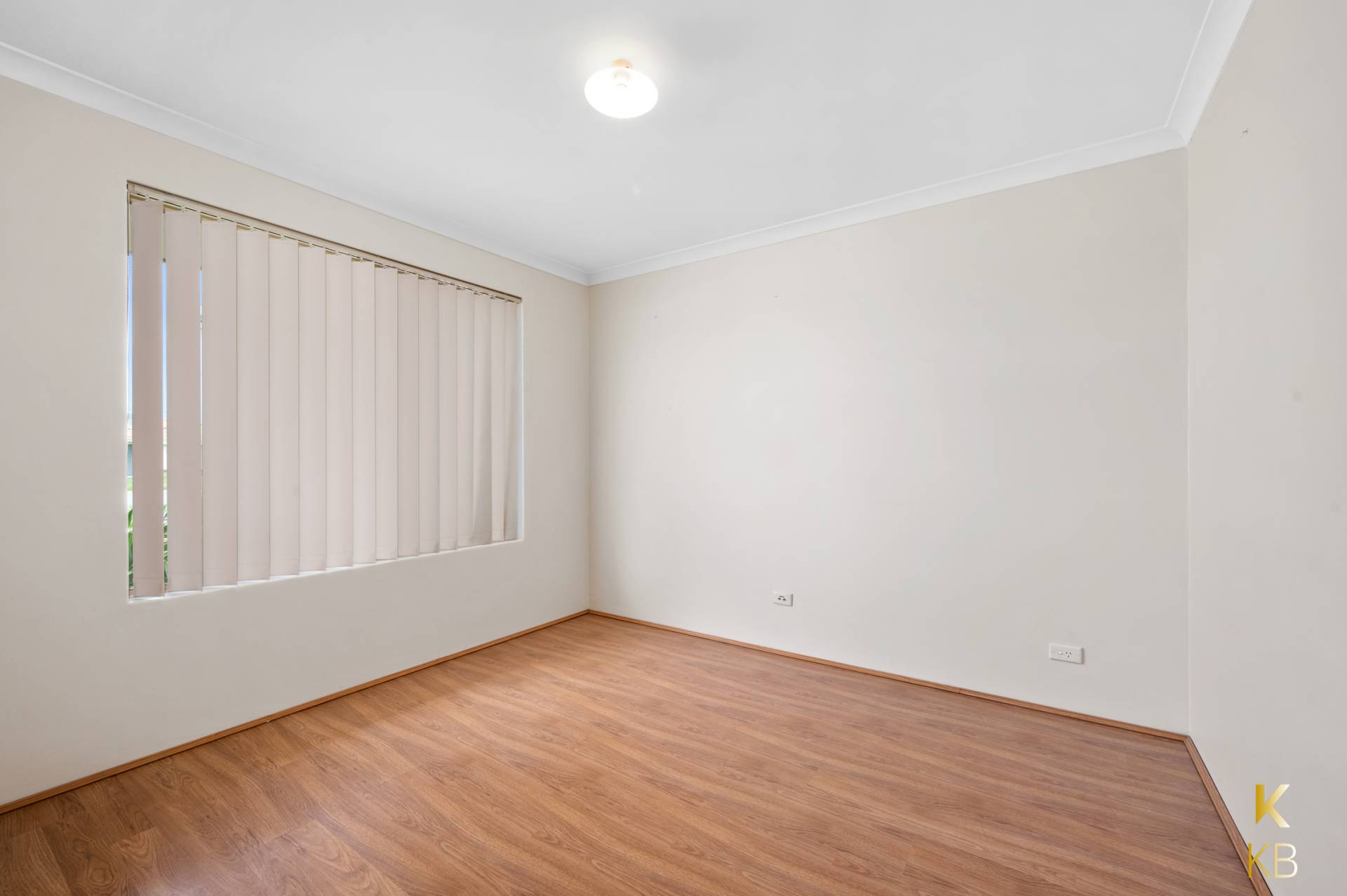 Venetian blinds to bedrooms and vertical blinds throughout living areas