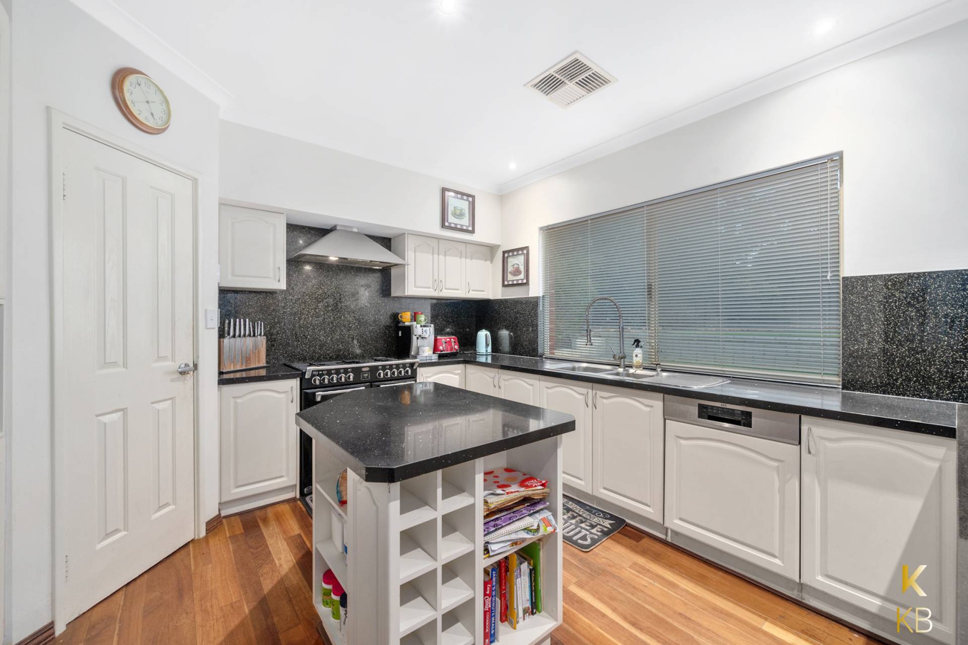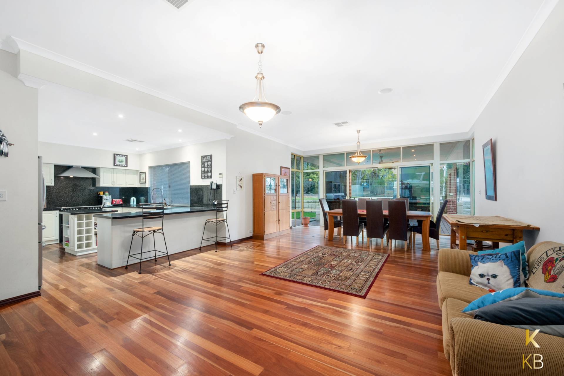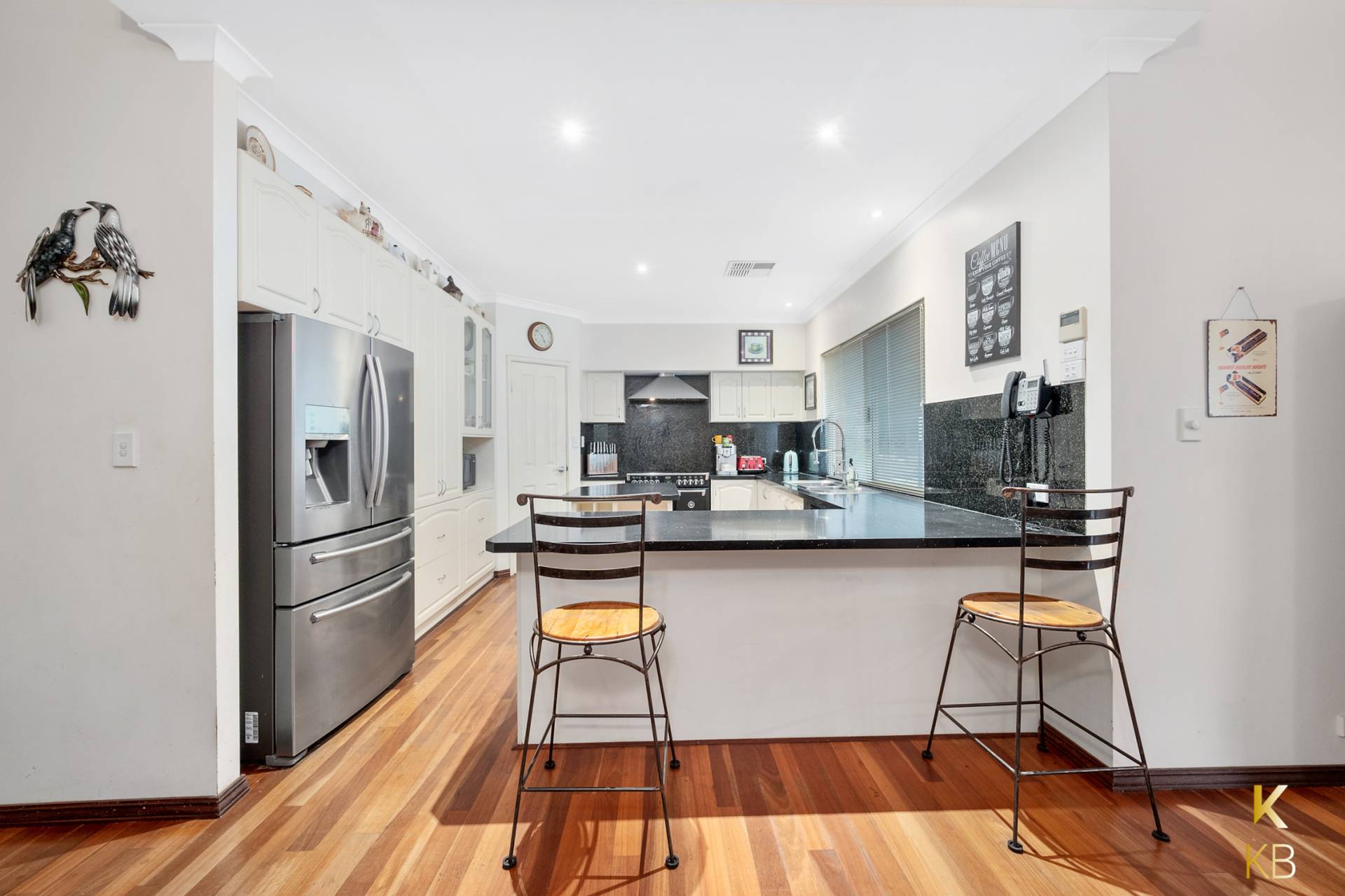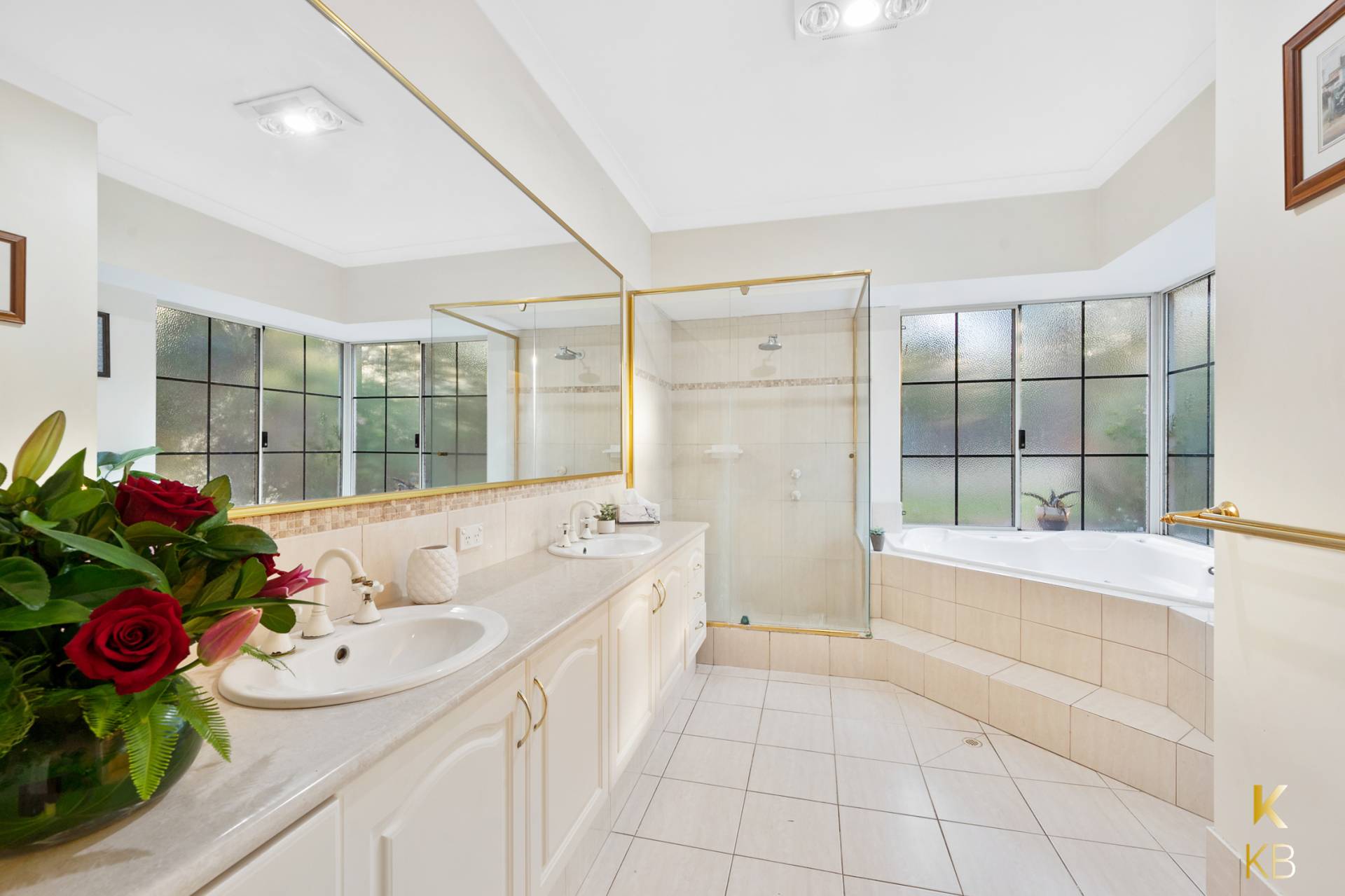 The grand open kitchen is fully fitted with plenty of storage, spacious fridge recess and lots of bench space. The glass splashbacks, granite benchtops and timber flooring show off the quality fitout and design. The kitchen also features breakfast bar, dishwasher, gas cooktop, double oven, island bench and large pantry.