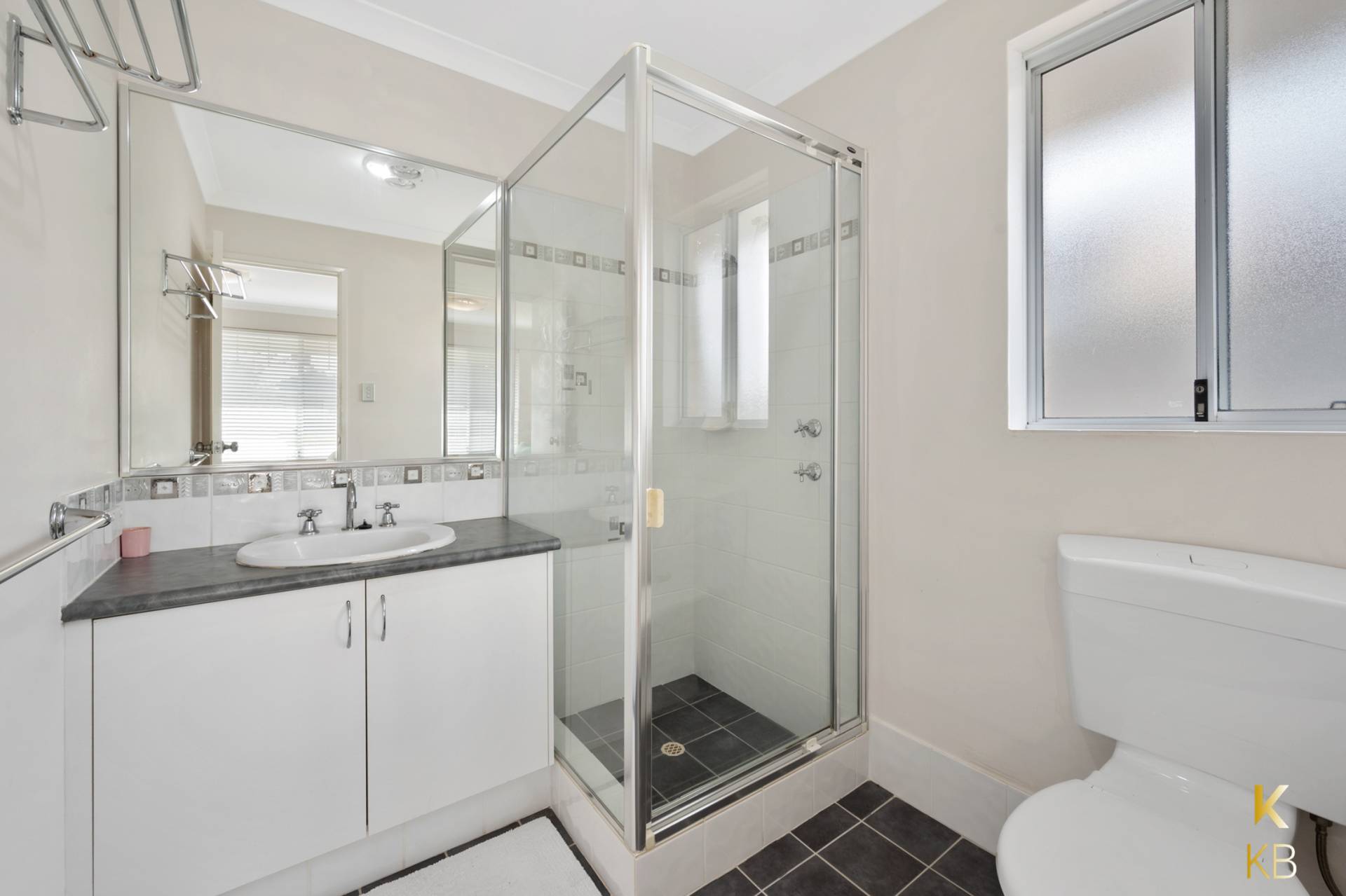 Large master bedroom to the front has reverse cycle air con and carpet for your comfort, a generous walk-in-robe and a clean and tidy en-suite.  Two minor bedrooms, to the rear are generous in size; both would fit double beds, both have carpets, built-in-robes and blinds.  Family bathroom has a decent size bath with central taps, tiled shower, vanity unit and additional shelving.  Separate WC and the laundry has direct outdoor access with space for a dryer or additional shelving/storage.