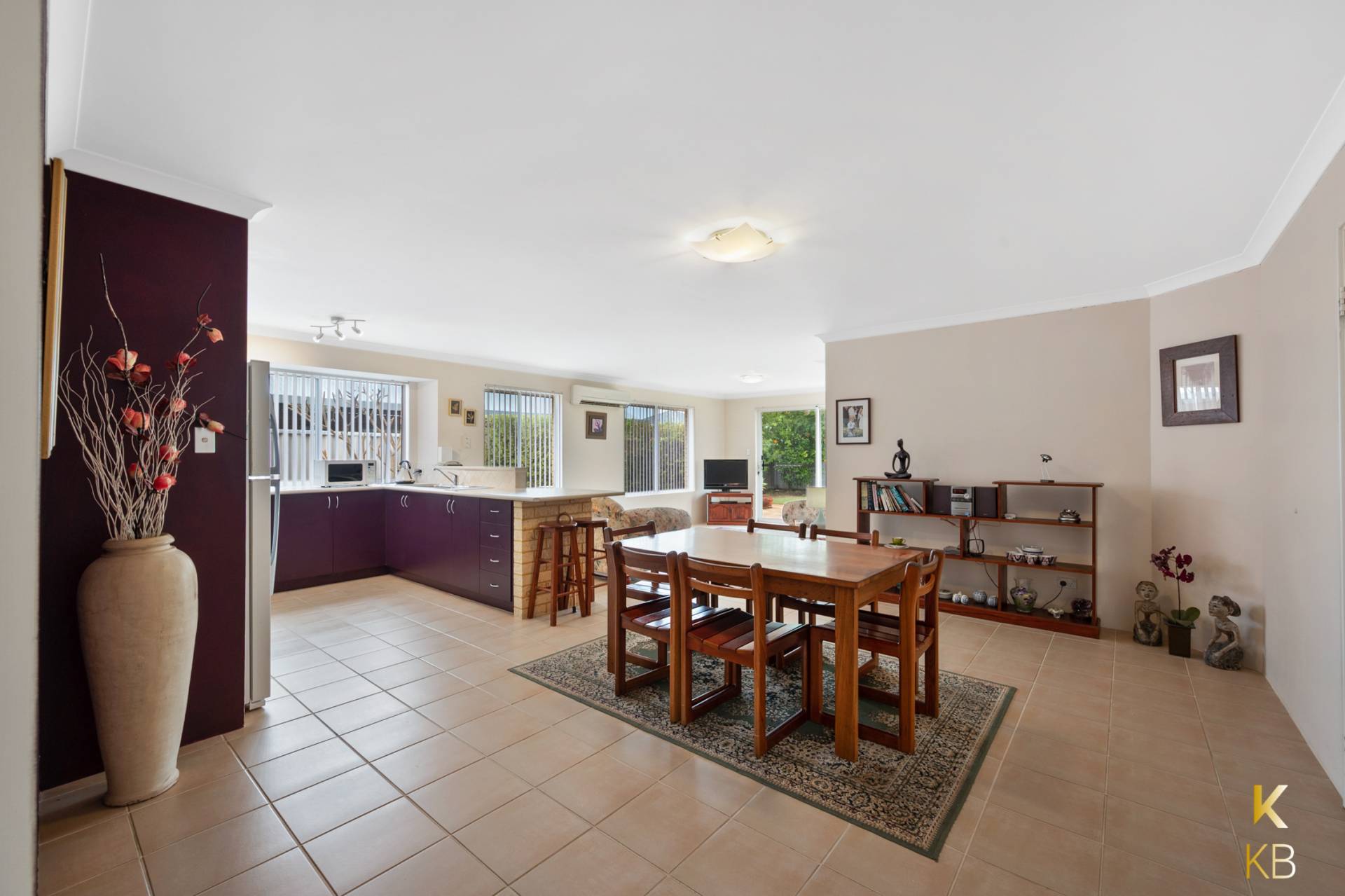 The modern looking kitchen offers plenty of bench space and storage with built-in electric oven and gas cooktop and overlooks the dining space and comfortable living area.  There is a small breakfast bar and convenient shoppers entry to the double garage.