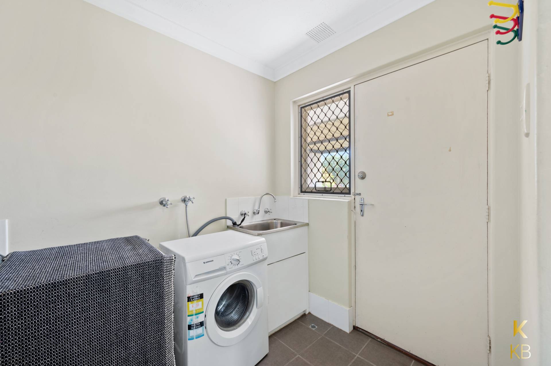 • Well-equipped internal laundry with patio access; two built-in linen cupboards