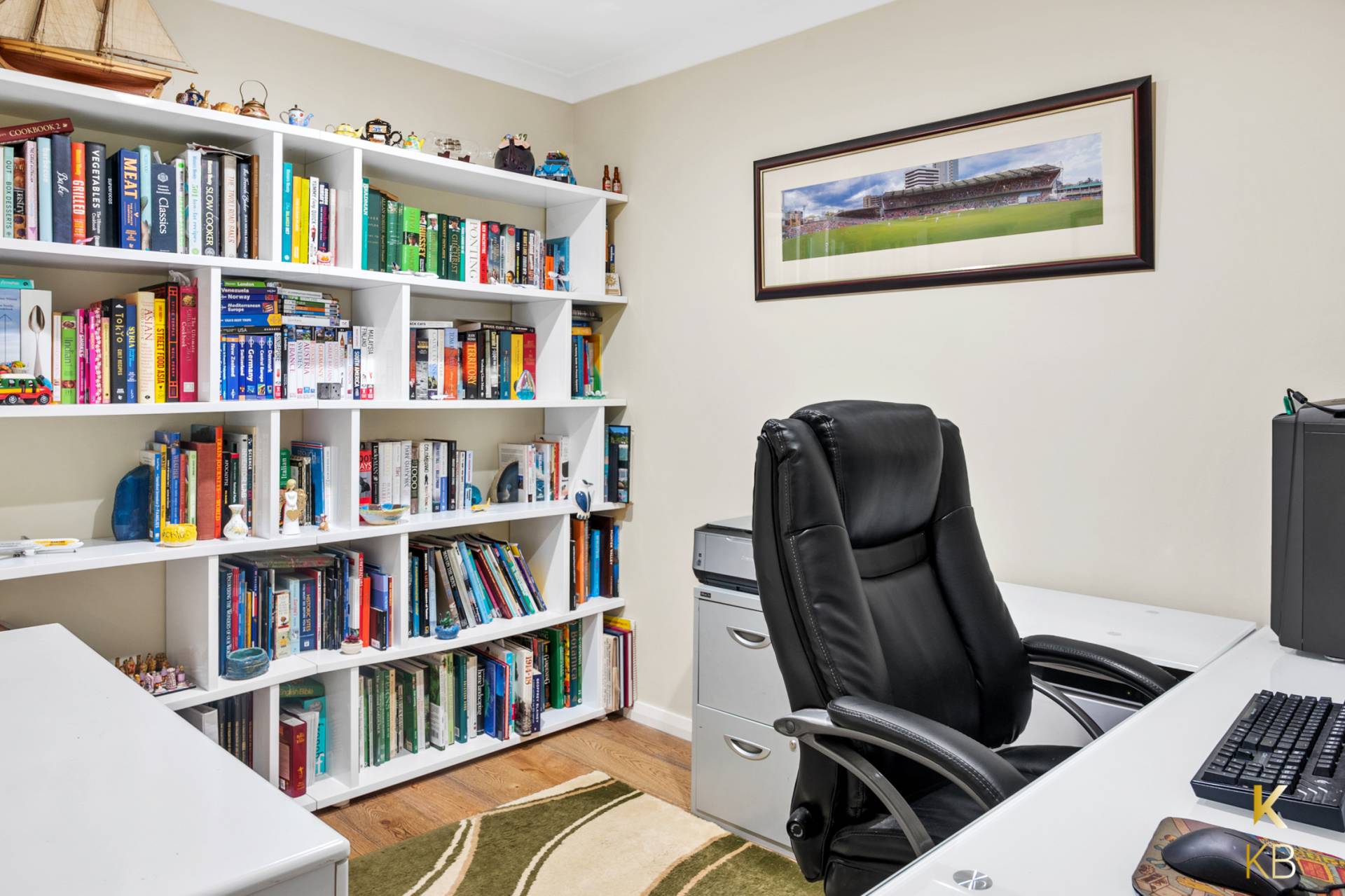 As you enter through the front door, on the right is the separate formal lounge room which boasts attractive quality decor, RC air-conditioning, quality blinds and timber flooring. On the left is a handy study or nursery with built in shelves.