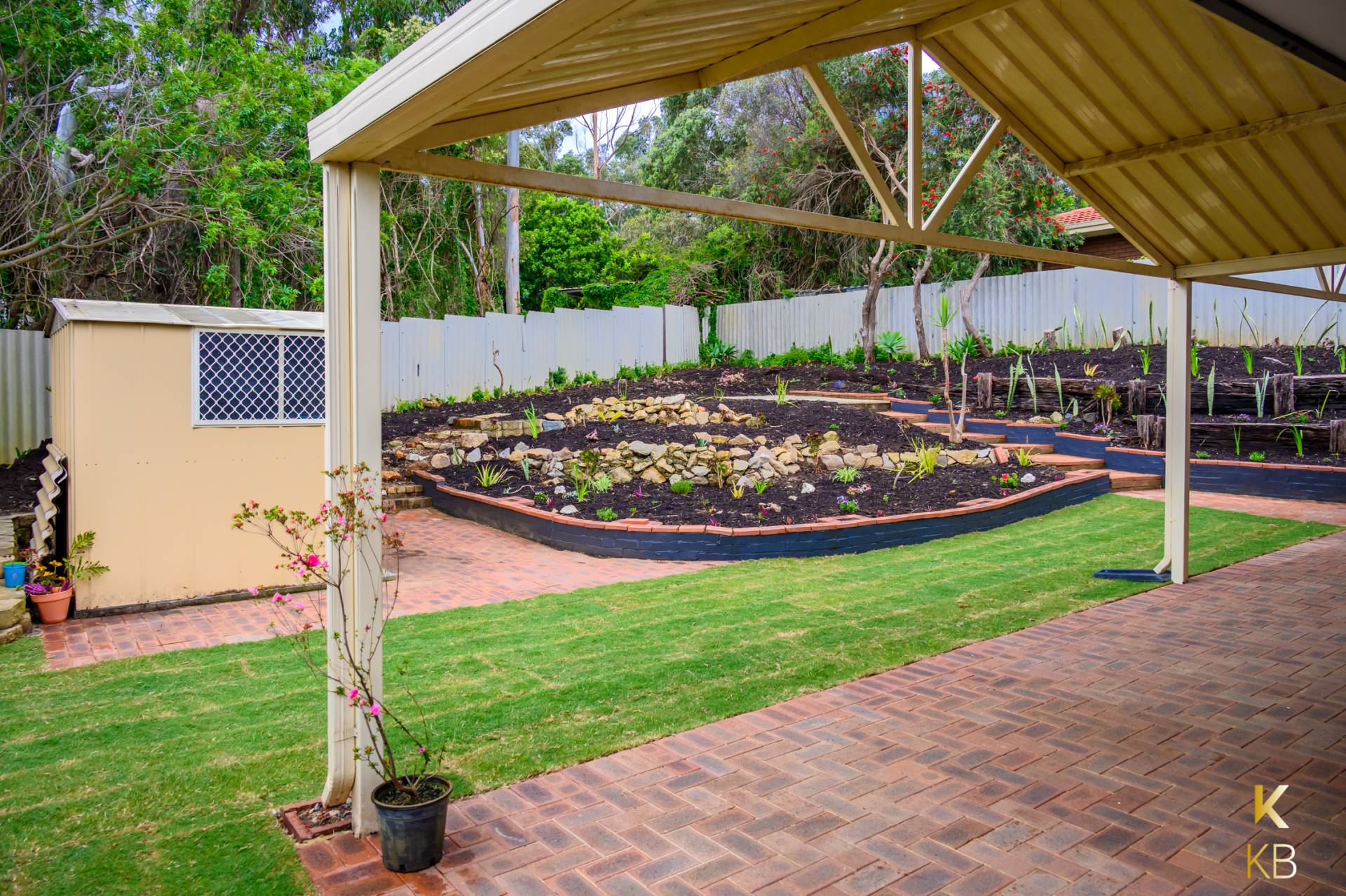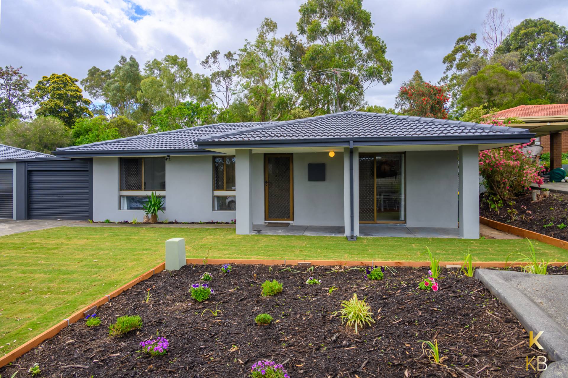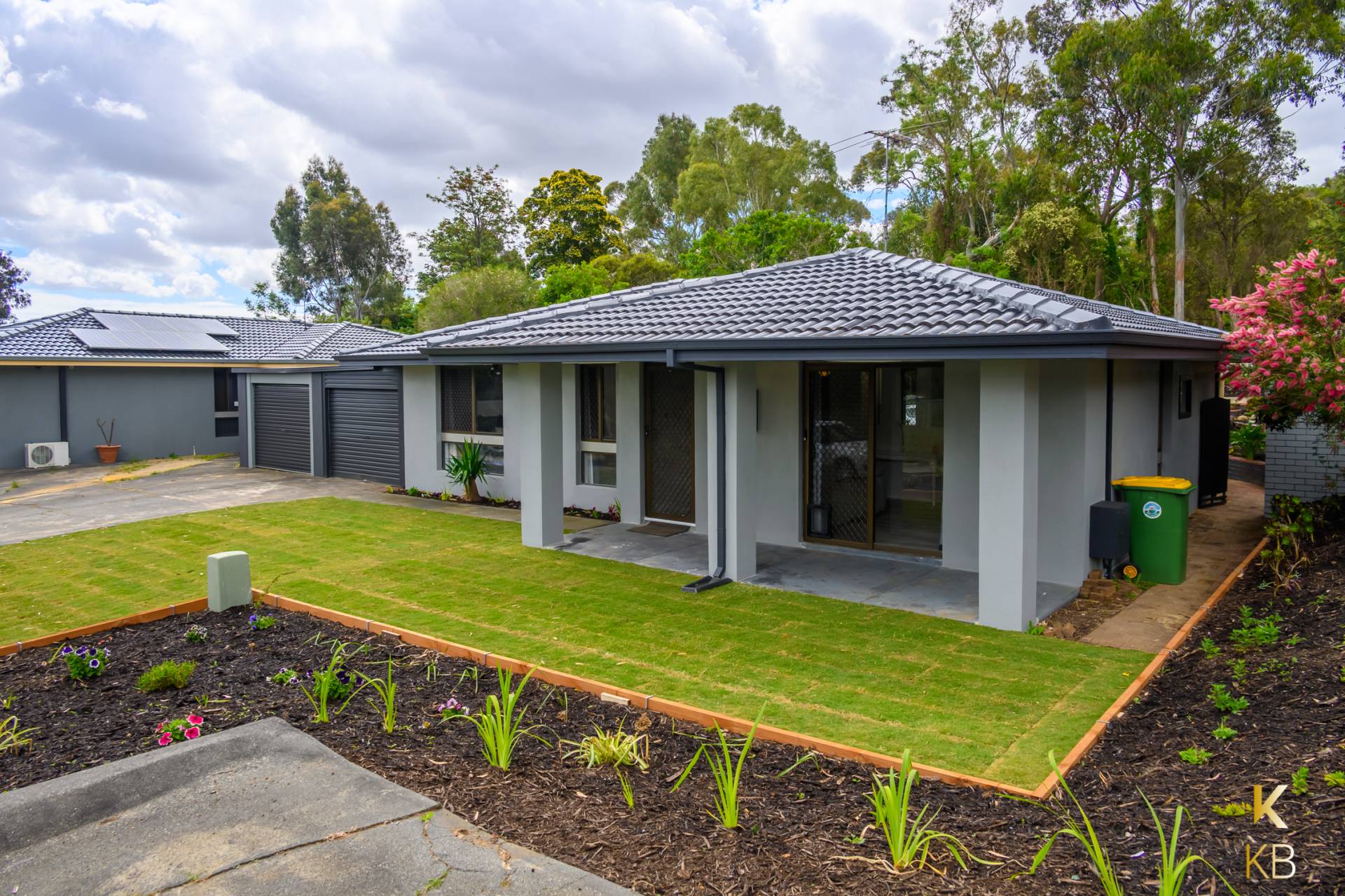 • New grass and garden beds front and back.