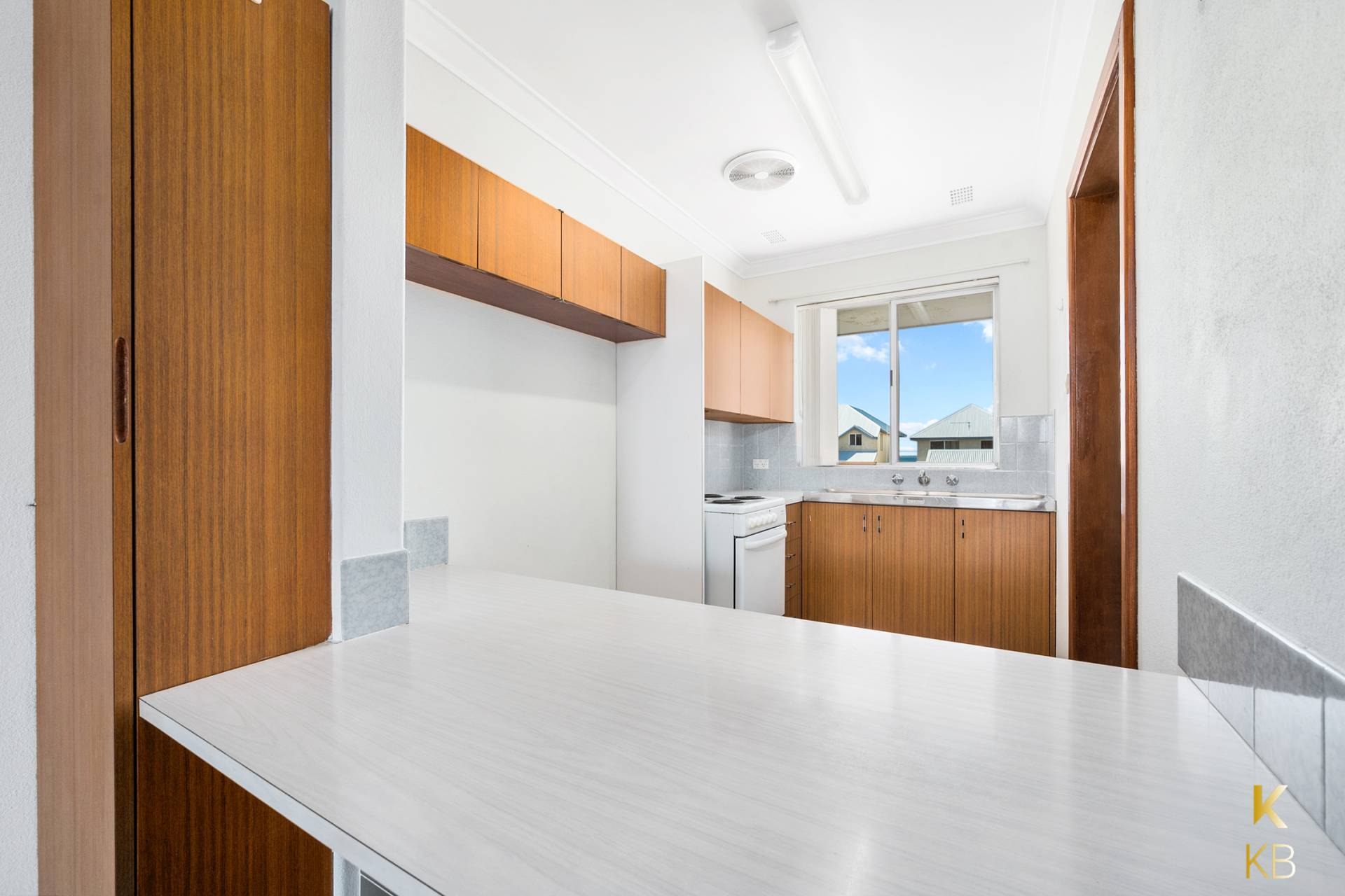 The small kitchen (with sea glimpses) includes an electric cooktop and oven, overhead cupboards, benchtop area and a small breakfast bar.  Two double bedrooms have large built in robes and are carpeted. Either would suit a study/home office.  The bathroom has good natural daylight from the feature roof light, with shower, vanity unit and WC.