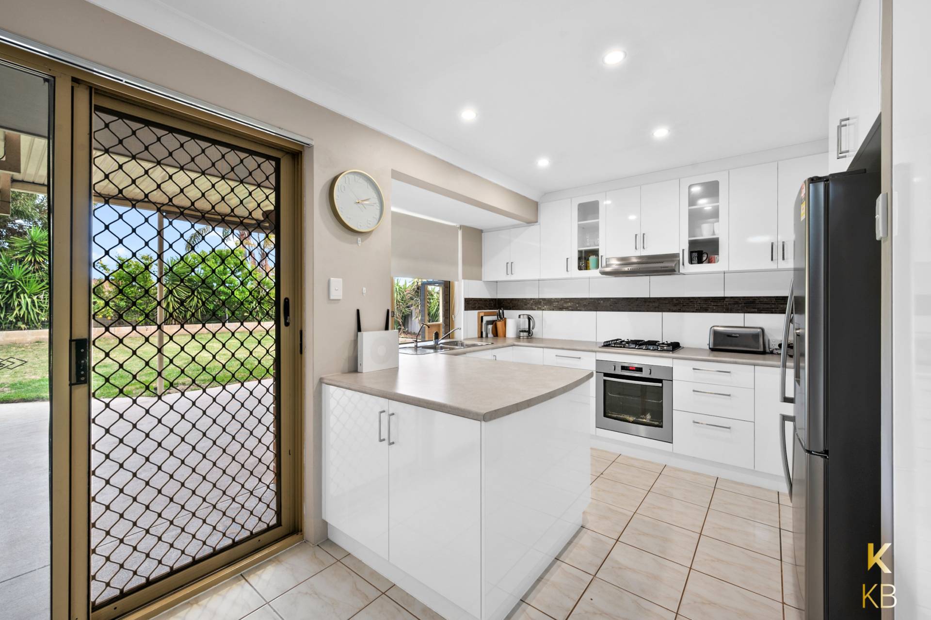 Through to the modern open kitchen, family and meals area you will find a fully functional kitchen complete with double stainless steel sink, gas cooktop and microwave recess, the area is light and bright.
