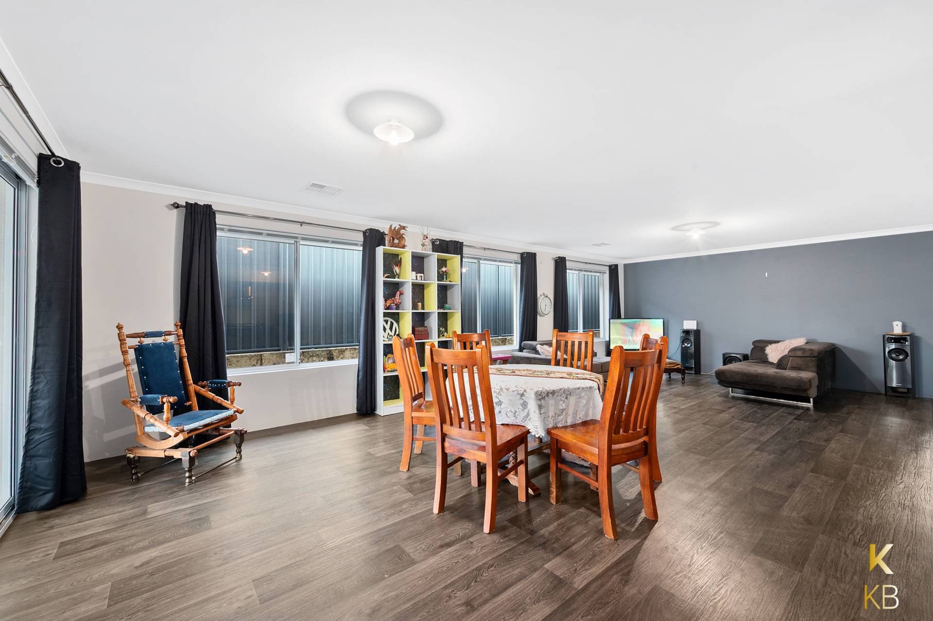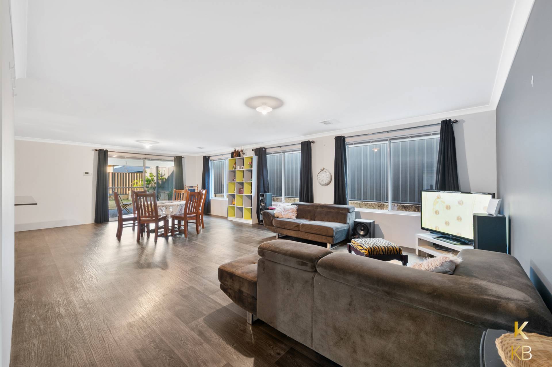 Grand entrance with front portico providing shelter and wide hallway gives a welcome sense of space.  Easy entertaining with the open plan kitchen / dining and living area that leads directly out to the Alfresco under the main roof with paved floor.