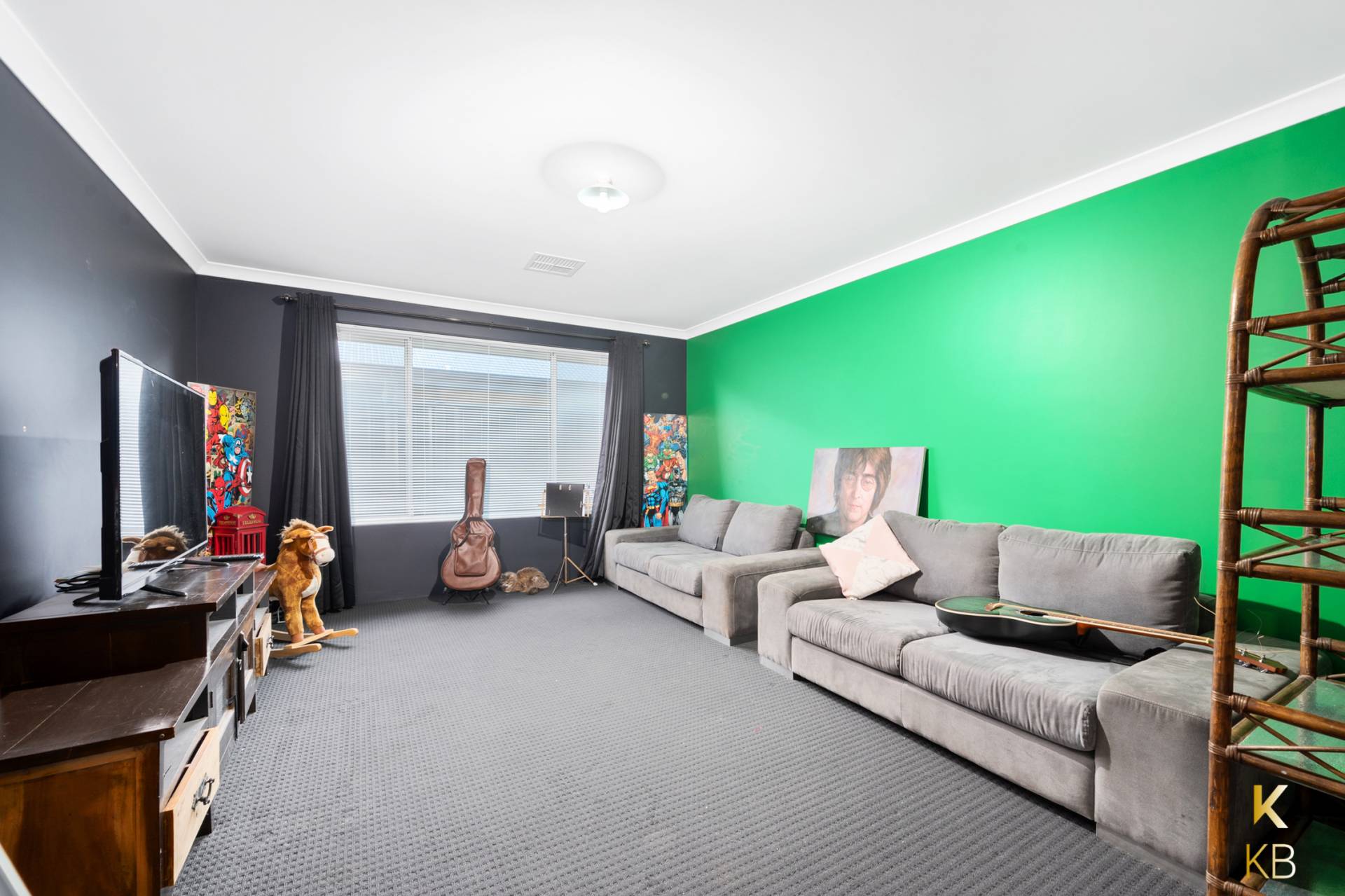 Separate theatre room with carpet for comfort and designed to accommodate a large lounge suite.
