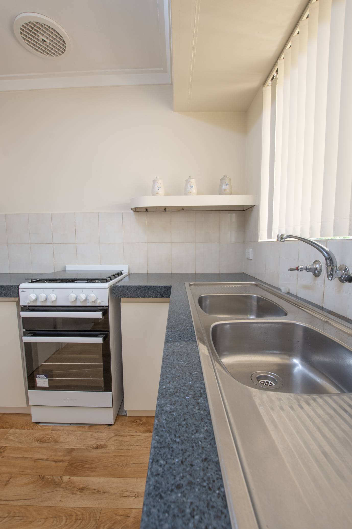 The unit consists of an open plan lounge/dining room off the kitchen fitted with carpet and vinyl flooring.