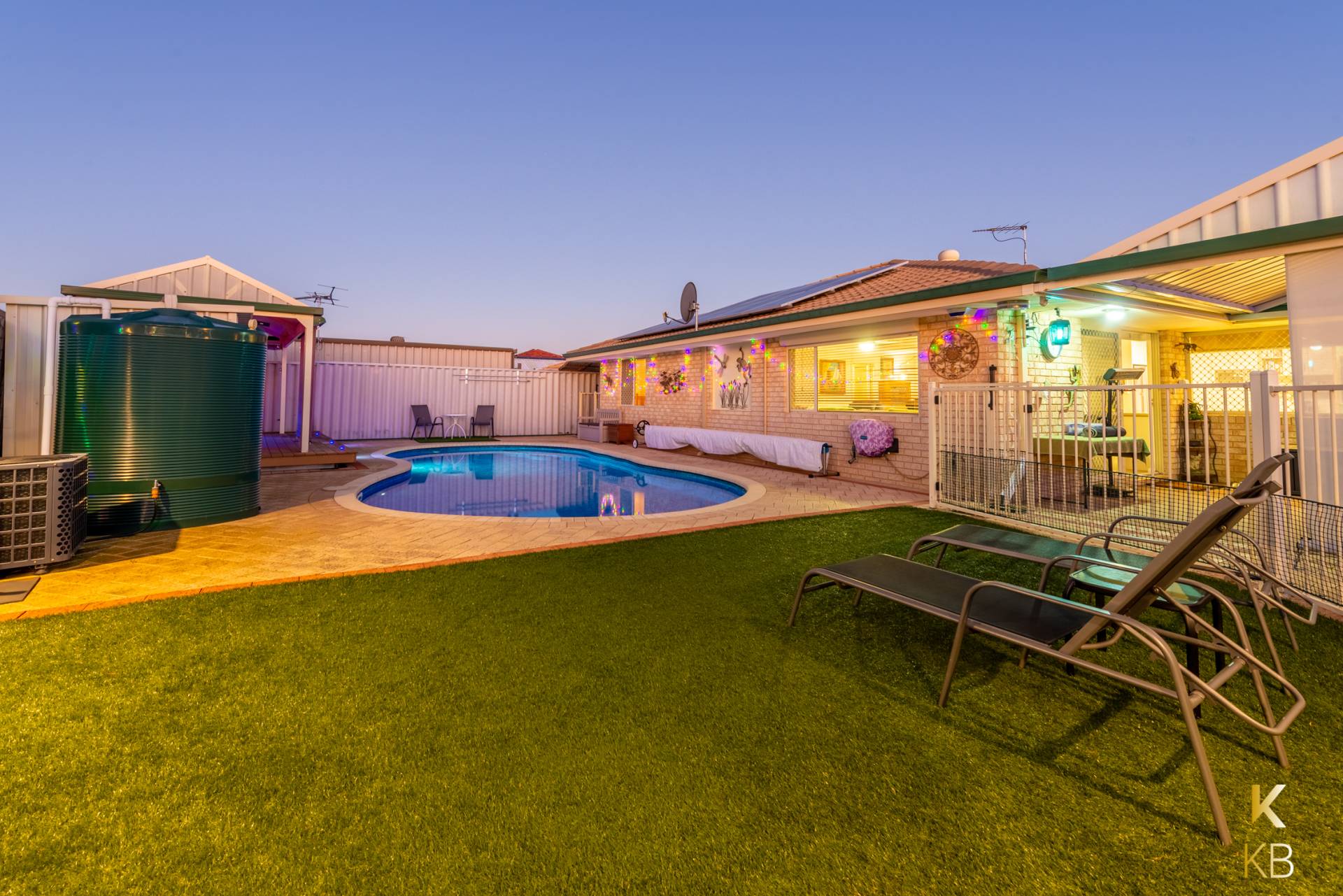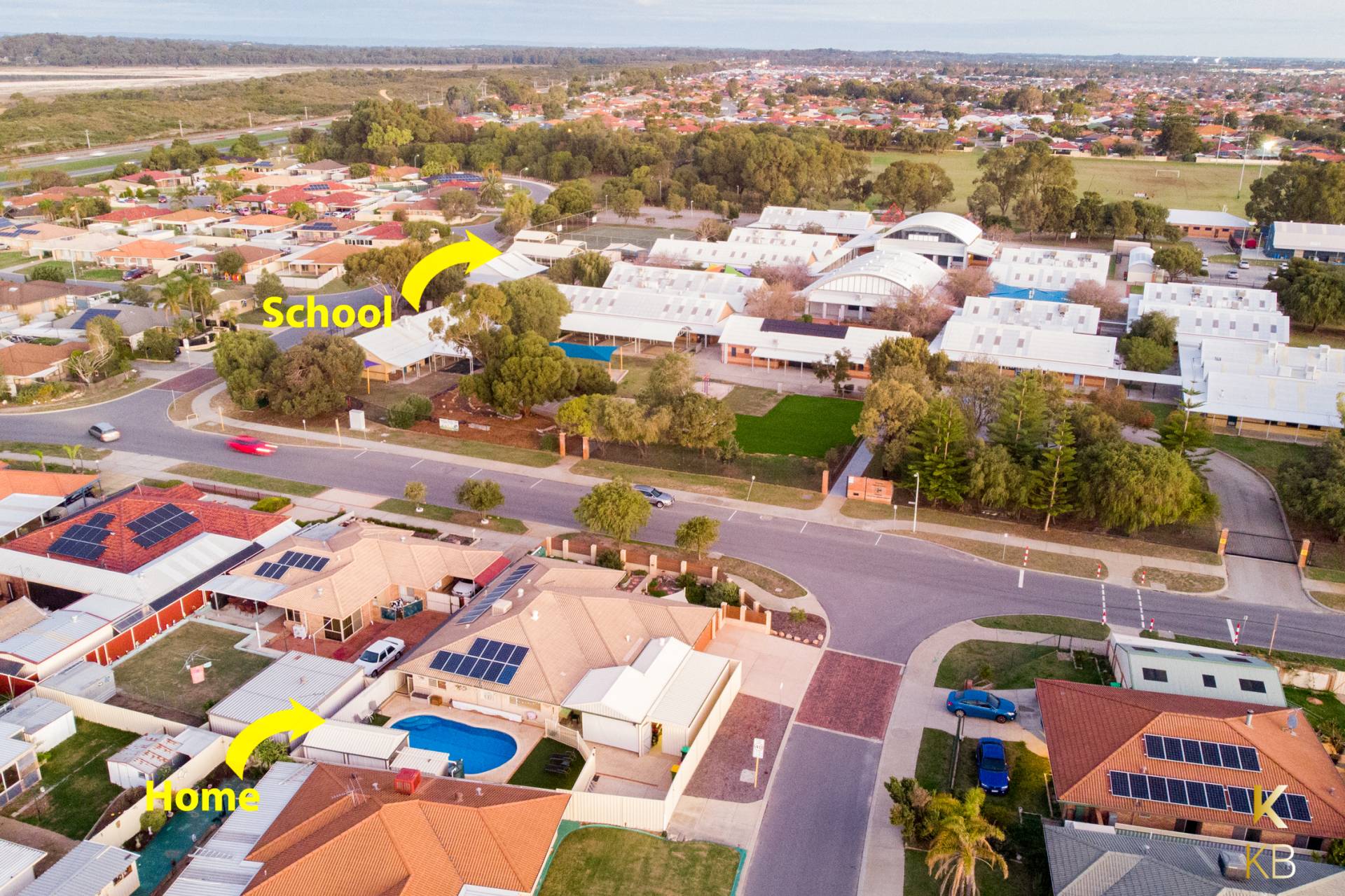 Great location, just opposite Koorana Primary School on a corner block.  Close to Warnbro Shopping Centre, local schools and Recreation Centre (Aqua Jetty - leisure pools and gym).  Jump out of the pool and meet the children or grandchildren at pick up time.   Or hide yourself away in your very own oasis that is so private and hidden from the outside world.