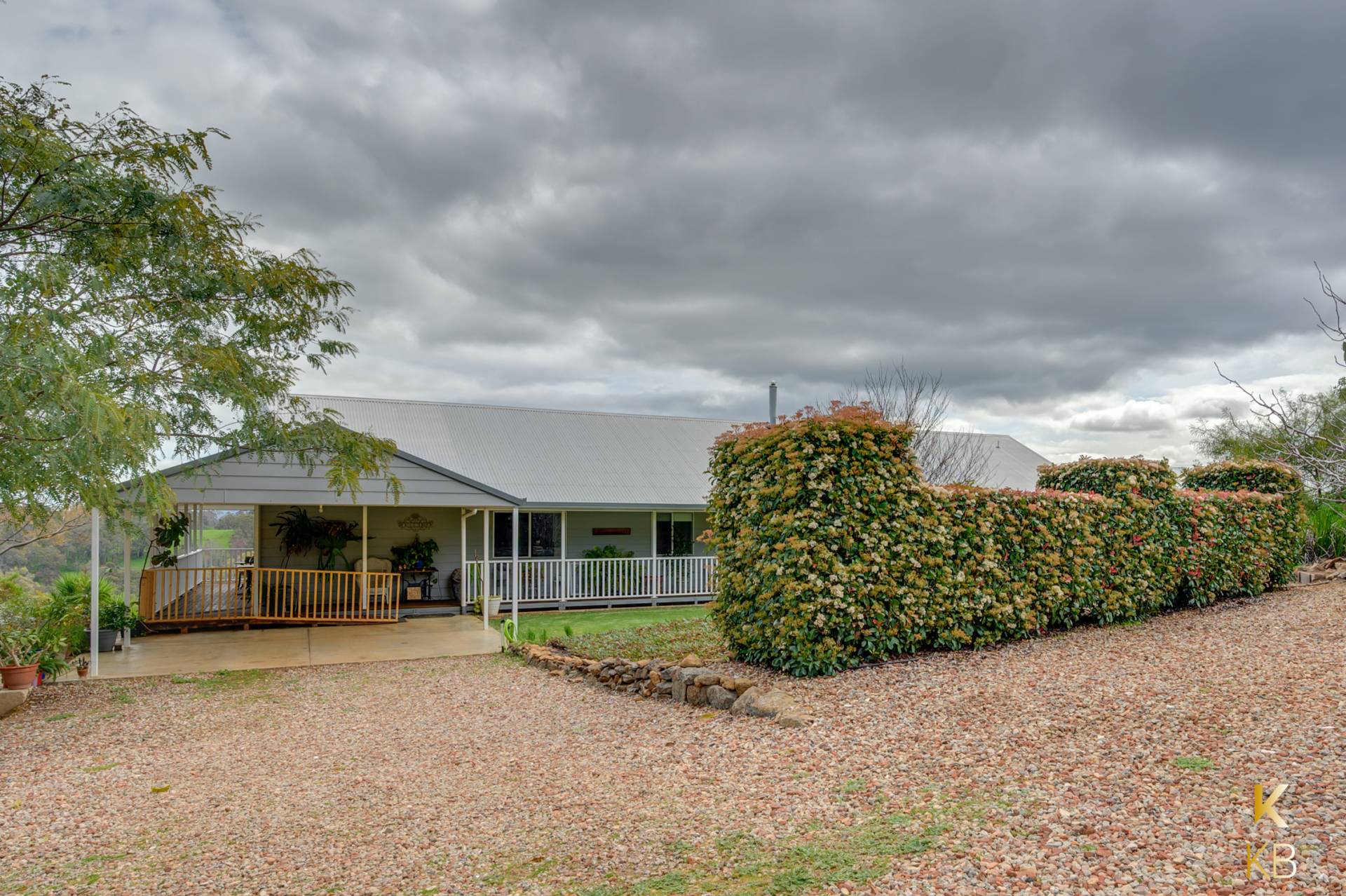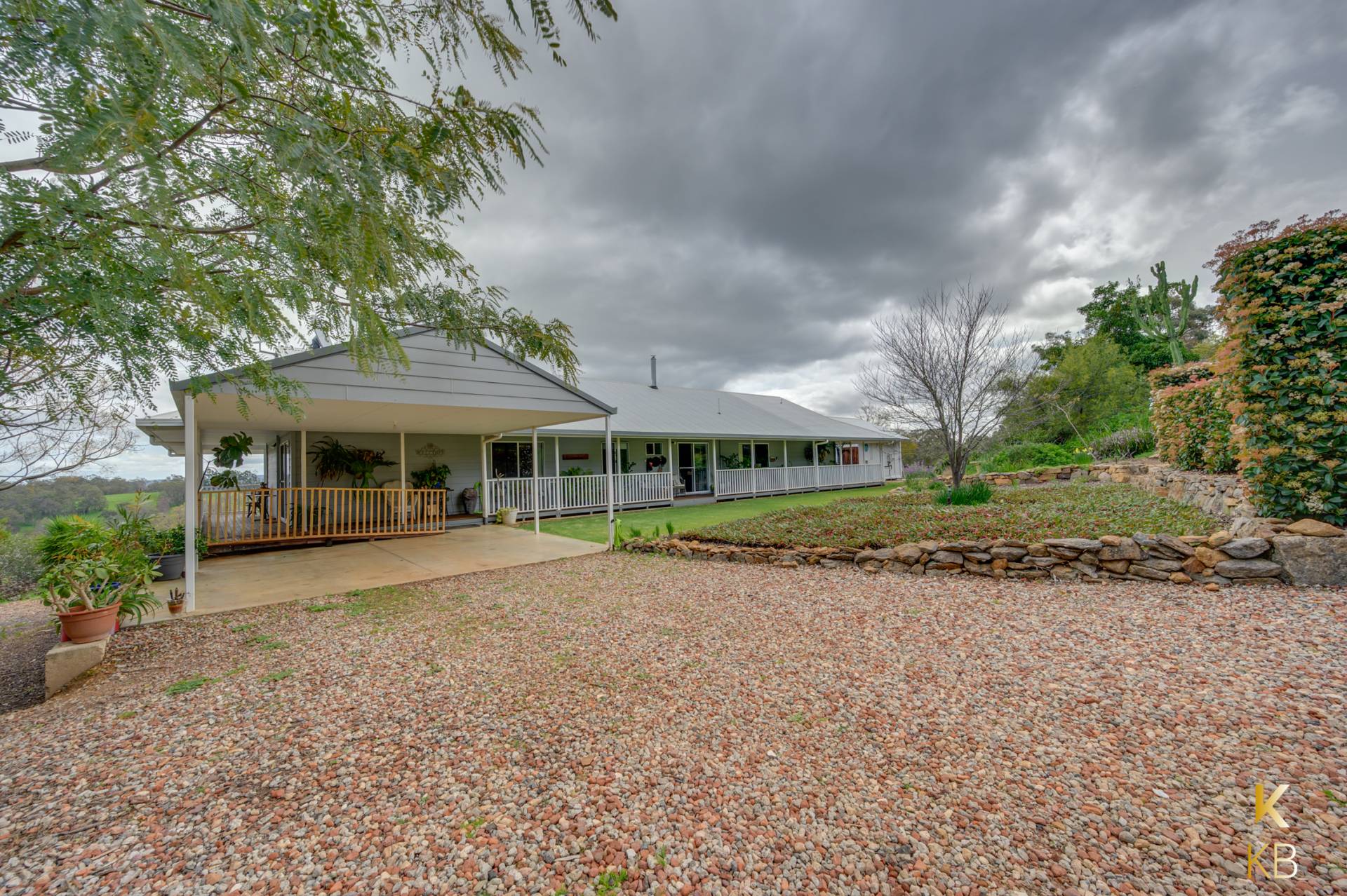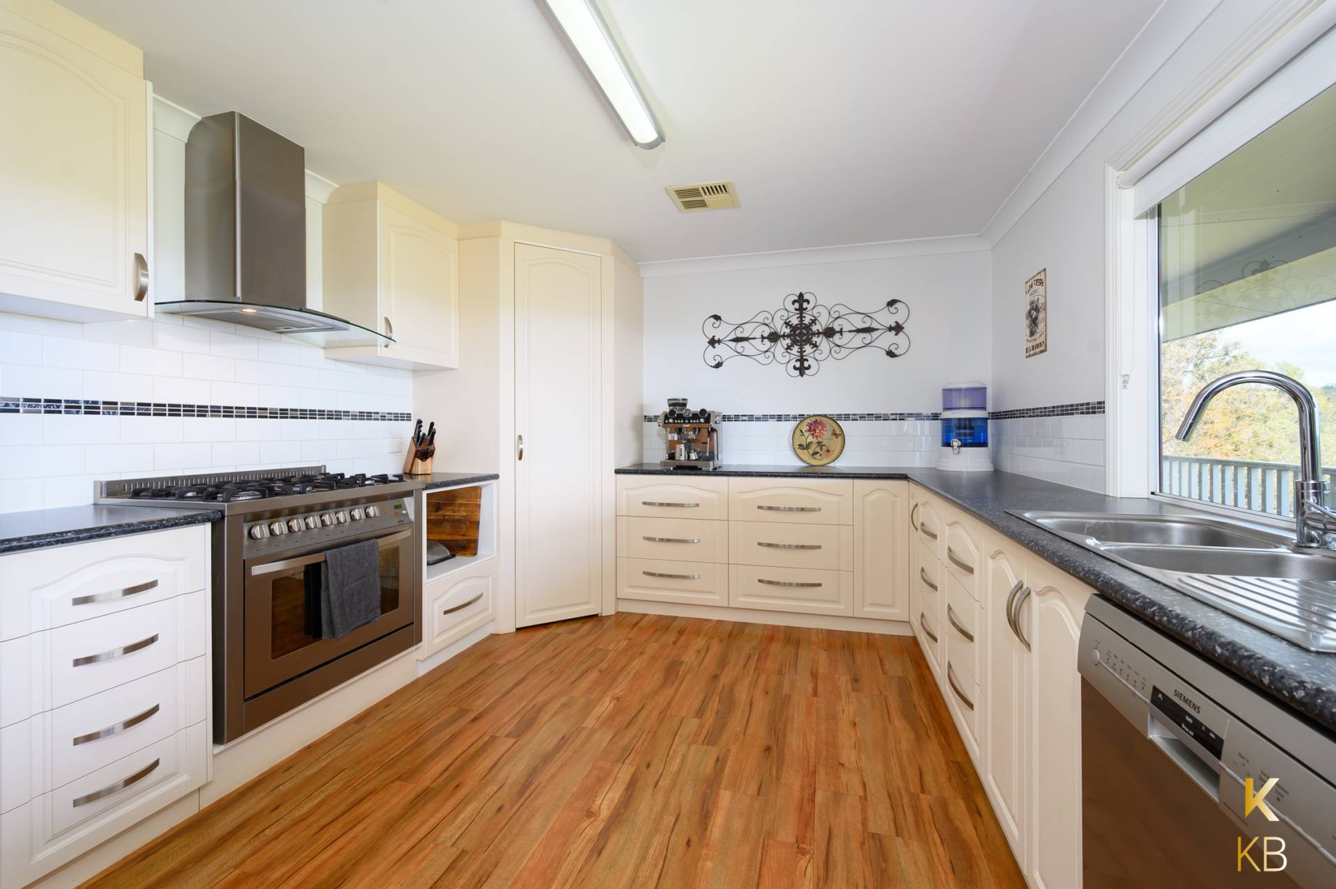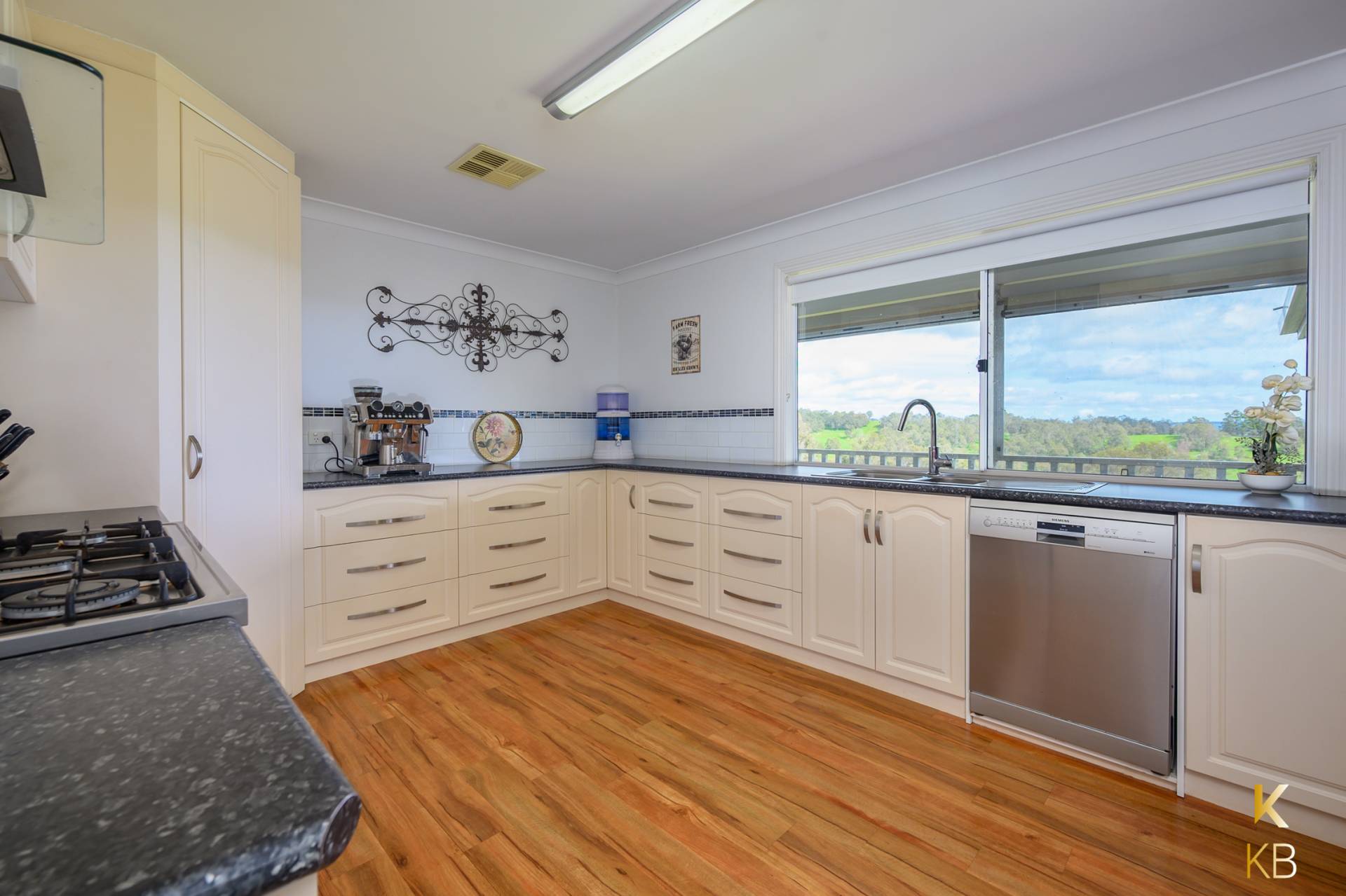 Known as Karrabilli Retreat, this charming property boasts awe-inspiring views of the valley below, making it a picturesque haven for those seeking both serenity and functionality. The home's well-appointed kitchen is a true delight, featuring an abundance of drawers and cupboard space. The spacious counters are complemented by a stunning window view, making even the simplest of tasks like doing the dishes a pleasure.