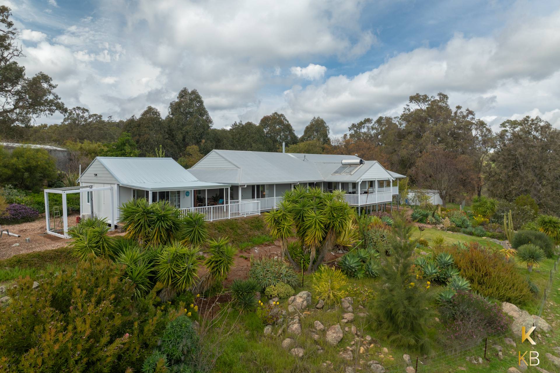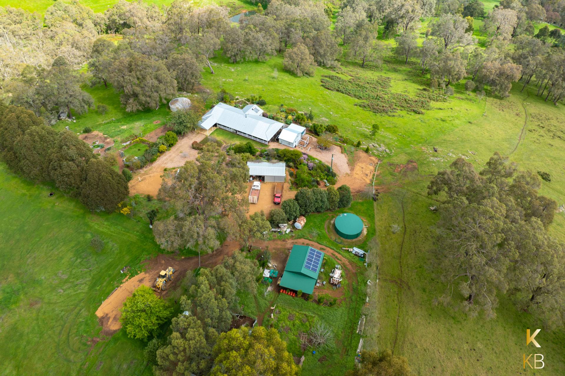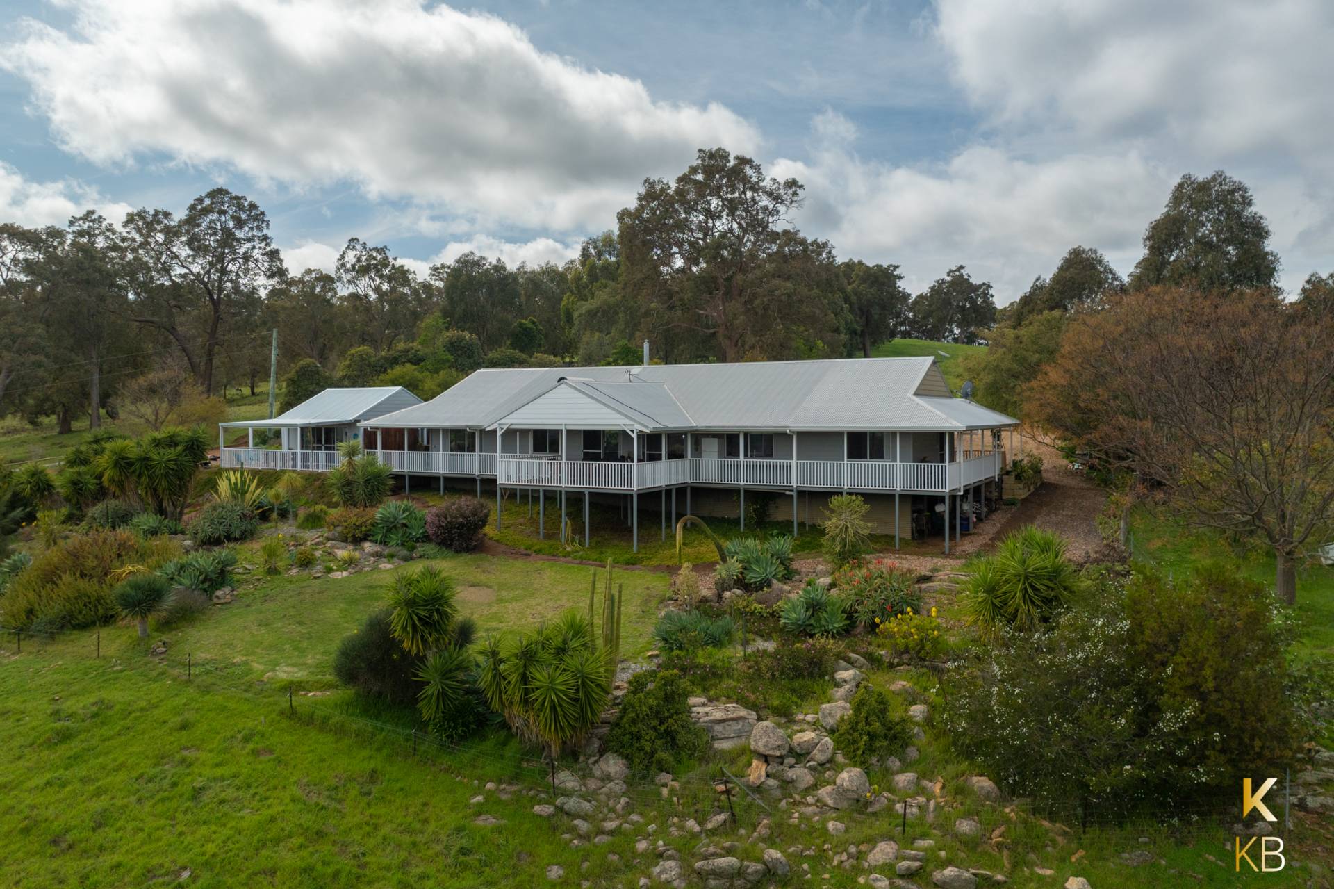 Comfort is ensured year-round with ducted reverse-cycle air-conditioning, while the 3 kW inverter and 12 solar panels offer eco-friendly energy efficiency. The easy-care gardens are beautifully landscaped, with trees scattered across the property. It features three dams, with the main dam equipped with a solar pump that supplies water to a tank for the gardens.