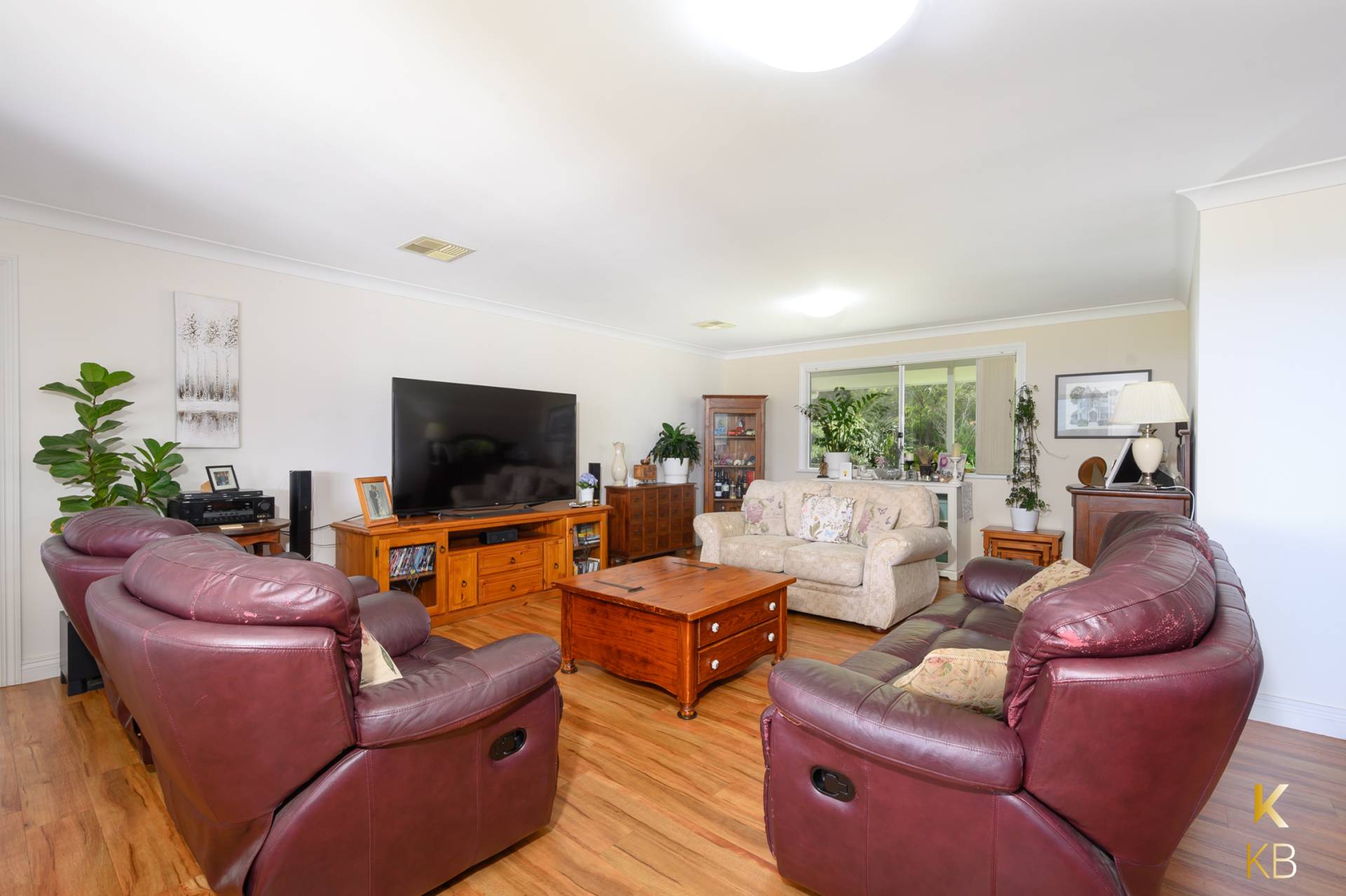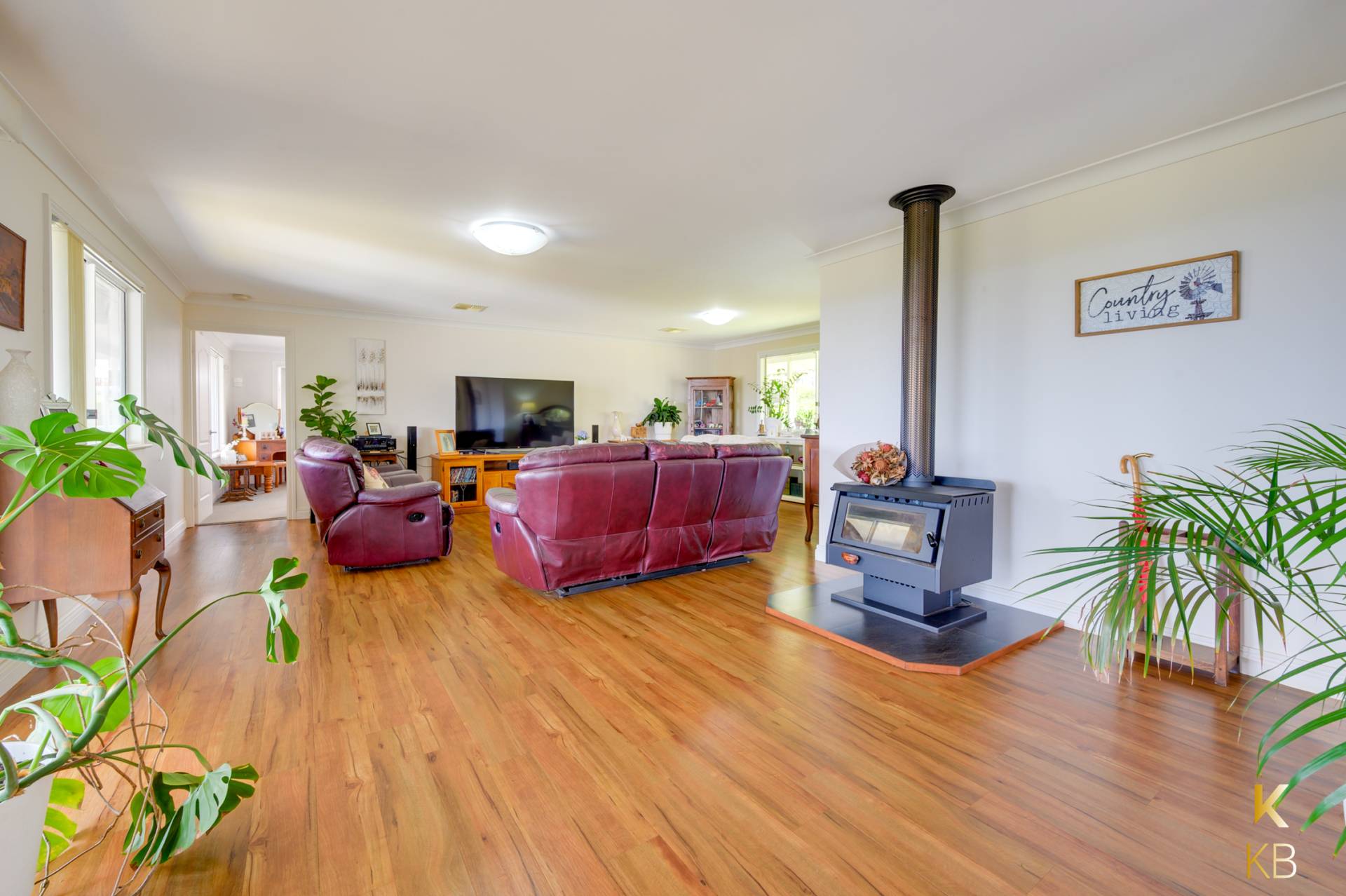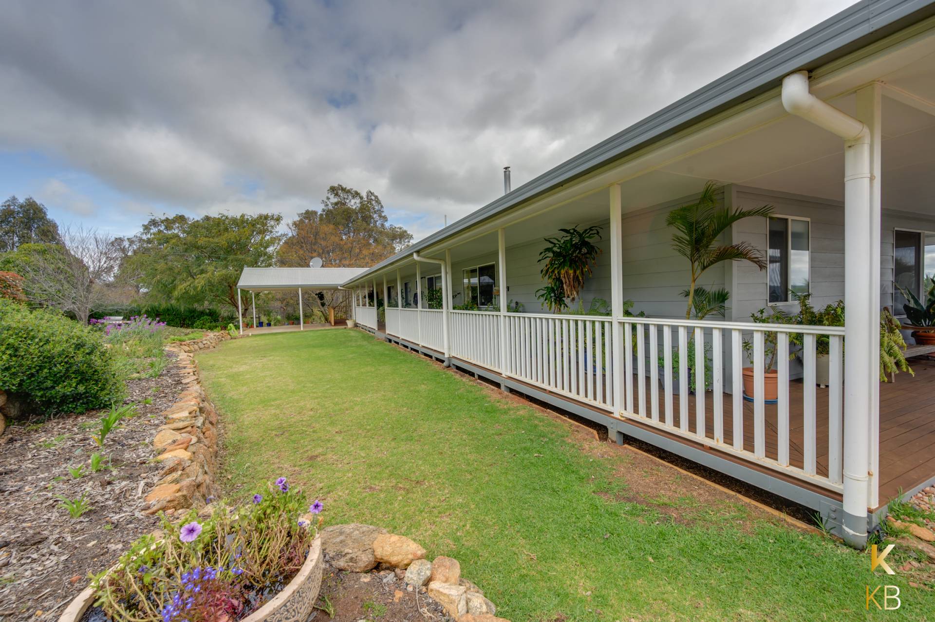Comfort is ensured year-round with ducted reverse-cycle air-conditioning, while the 3 kW inverter and 12 solar panels offer eco-friendly energy efficiency. The easy-care gardens are beautifully landscaped, with trees scattered across the property. It features three dams, with the main dam equipped with a solar pump that supplies water to a tank for the gardens.