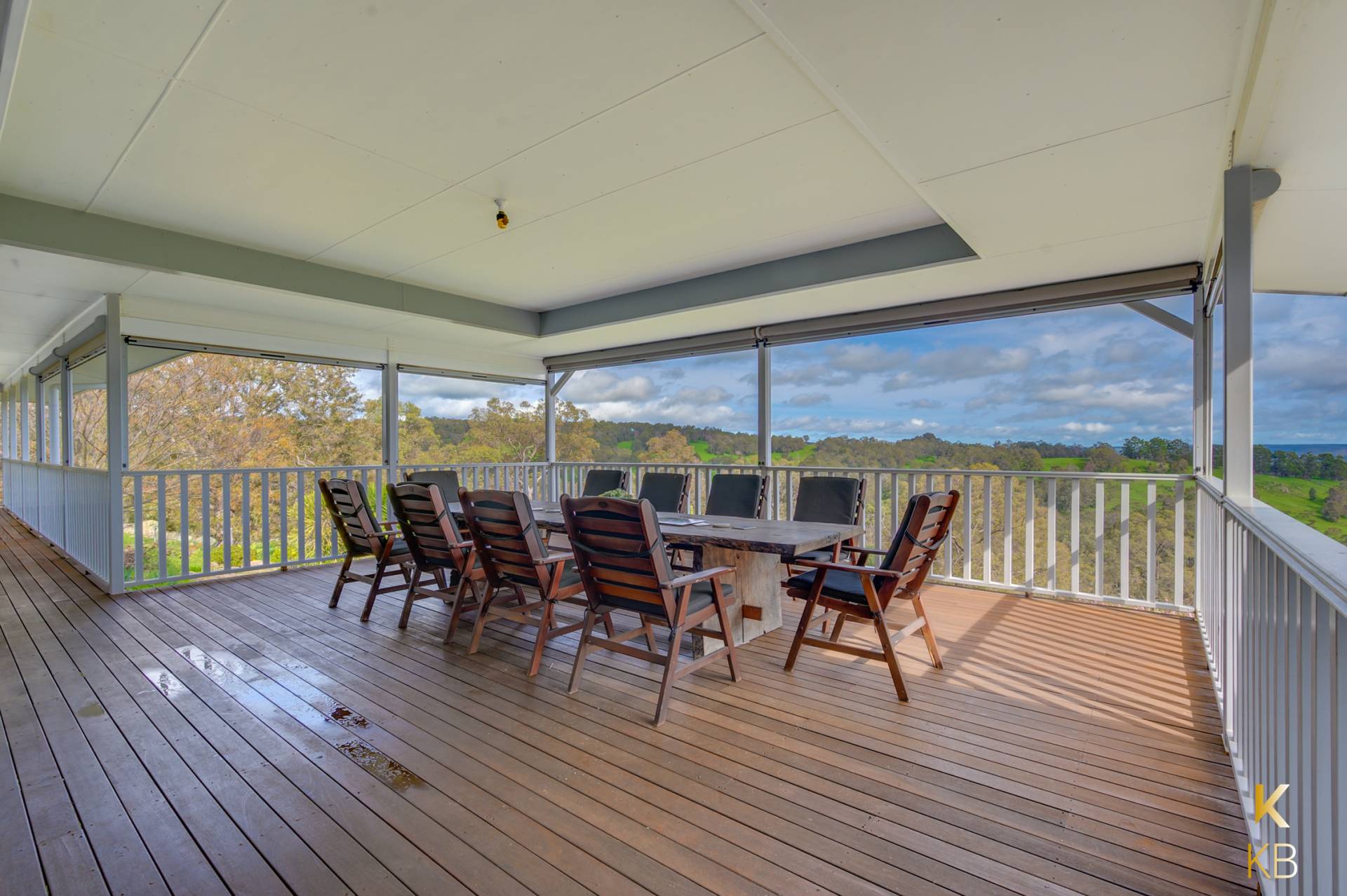 Nestled in the tranquility of the countryside, this sprawling 102-acre estate offers an unrivaled escape, surrounded by lush greenery and a magnificent timber deck that frames the home.