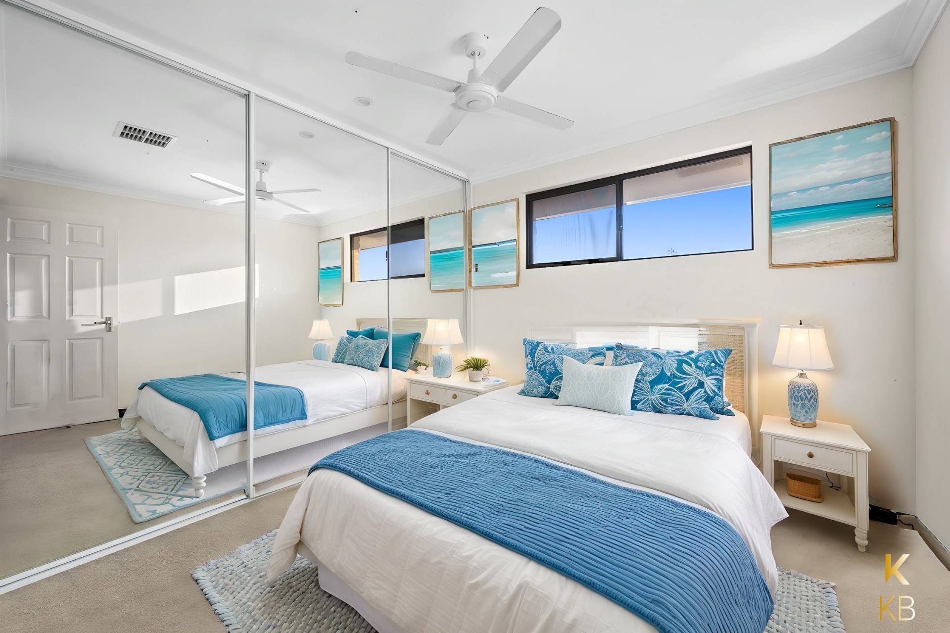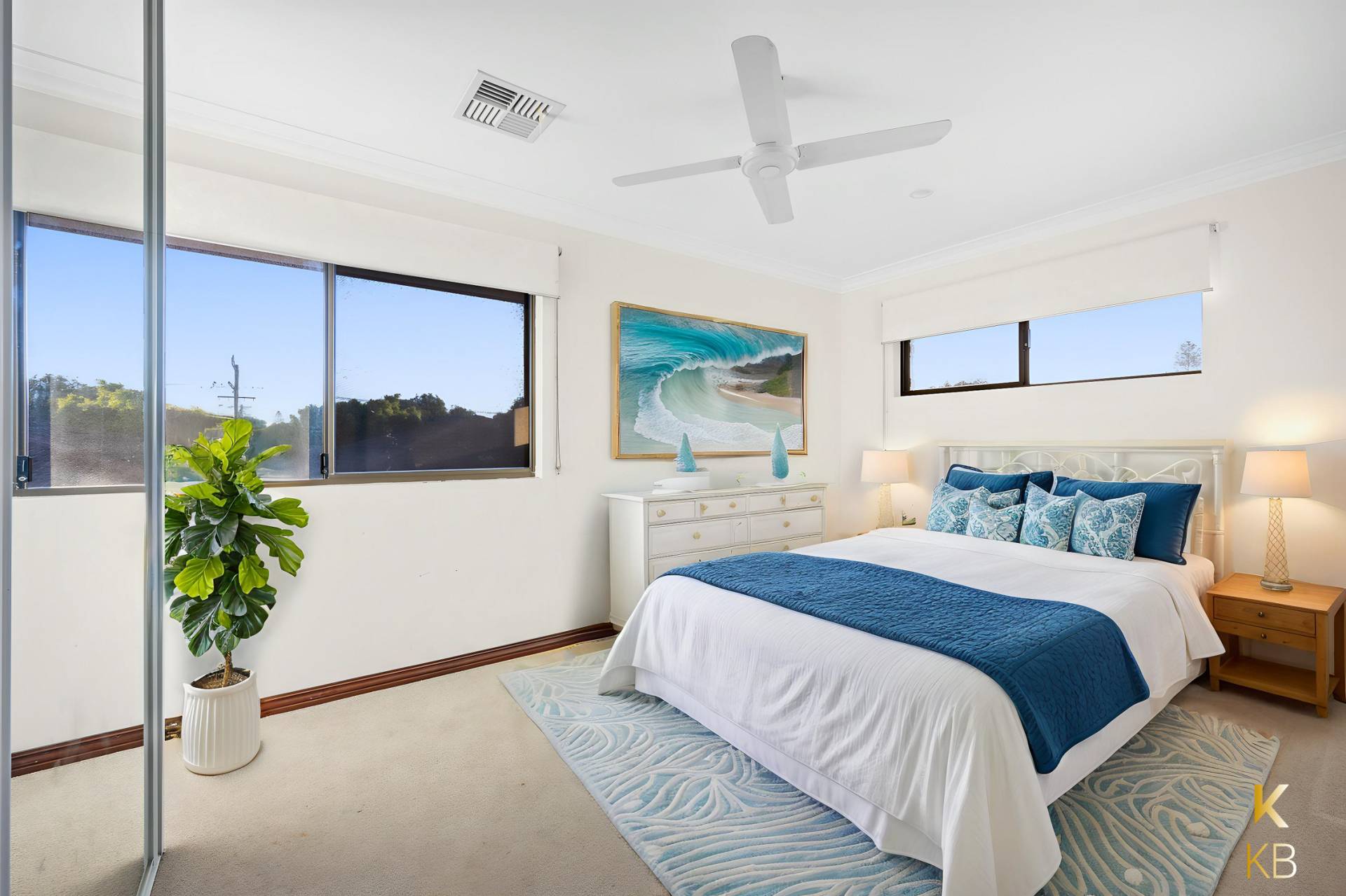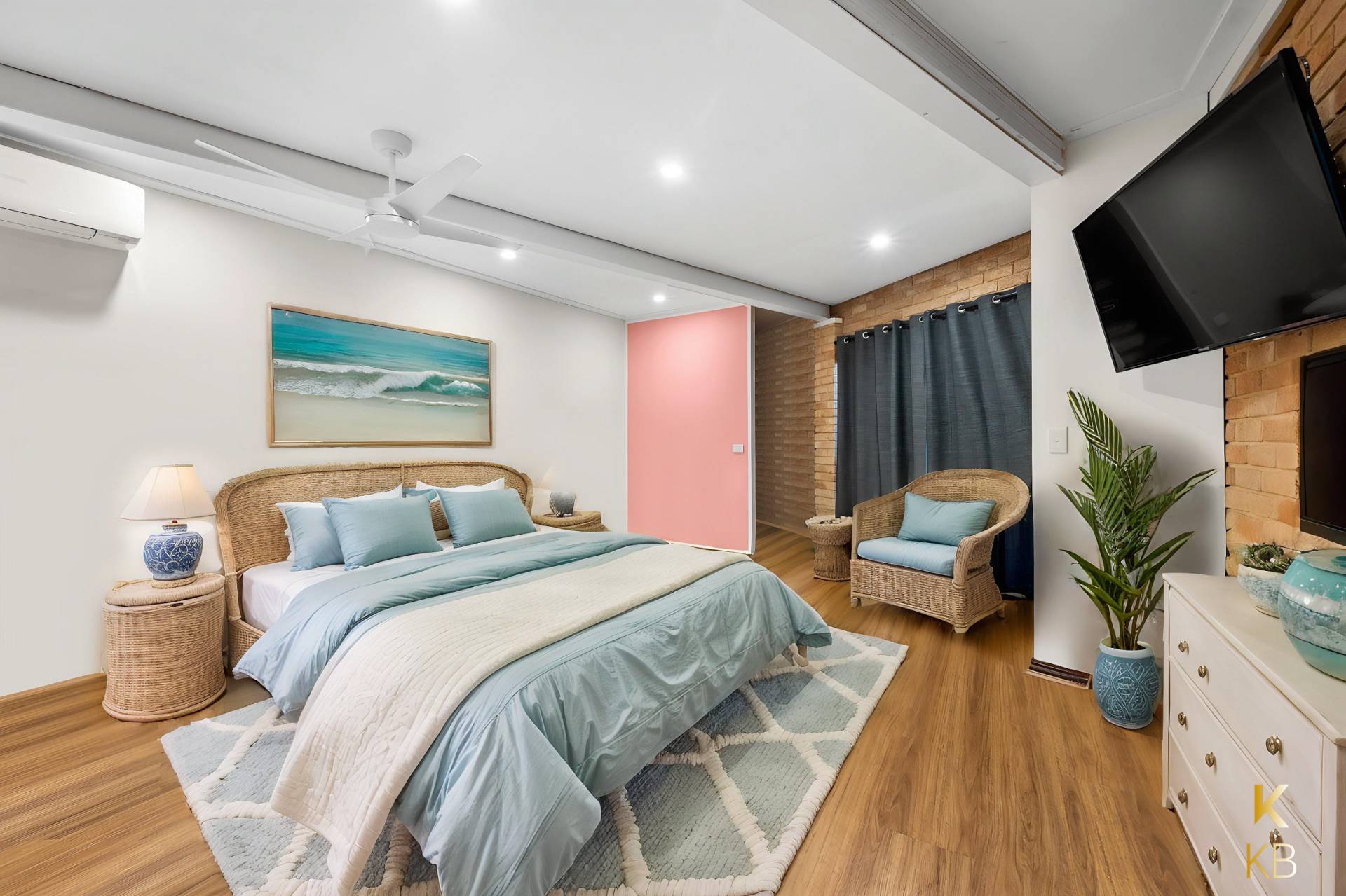 Also located on the ground floor is the second bedroom, originally two rooms that have been seamlessly combined to create a spacious bedroom with a retreat and private ensuite—perfect for guests or extended family.