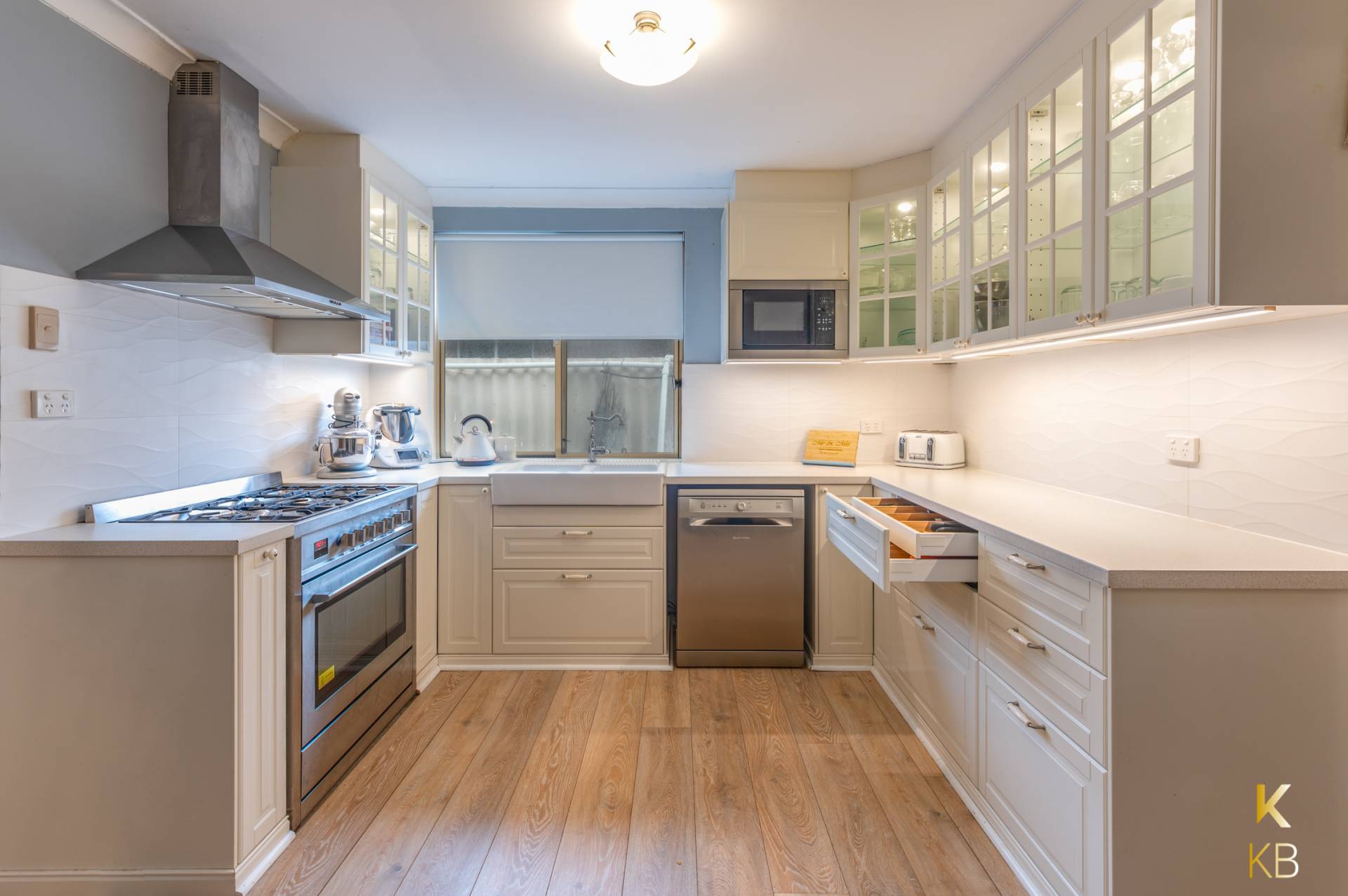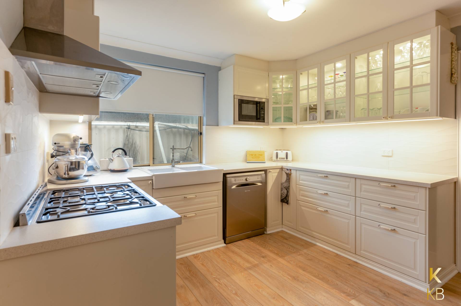 * Renovated kitchen with large chefs oven, extractor fan; double butler sink; and plenty of bench space, cabinets and drawers; double fridge recess