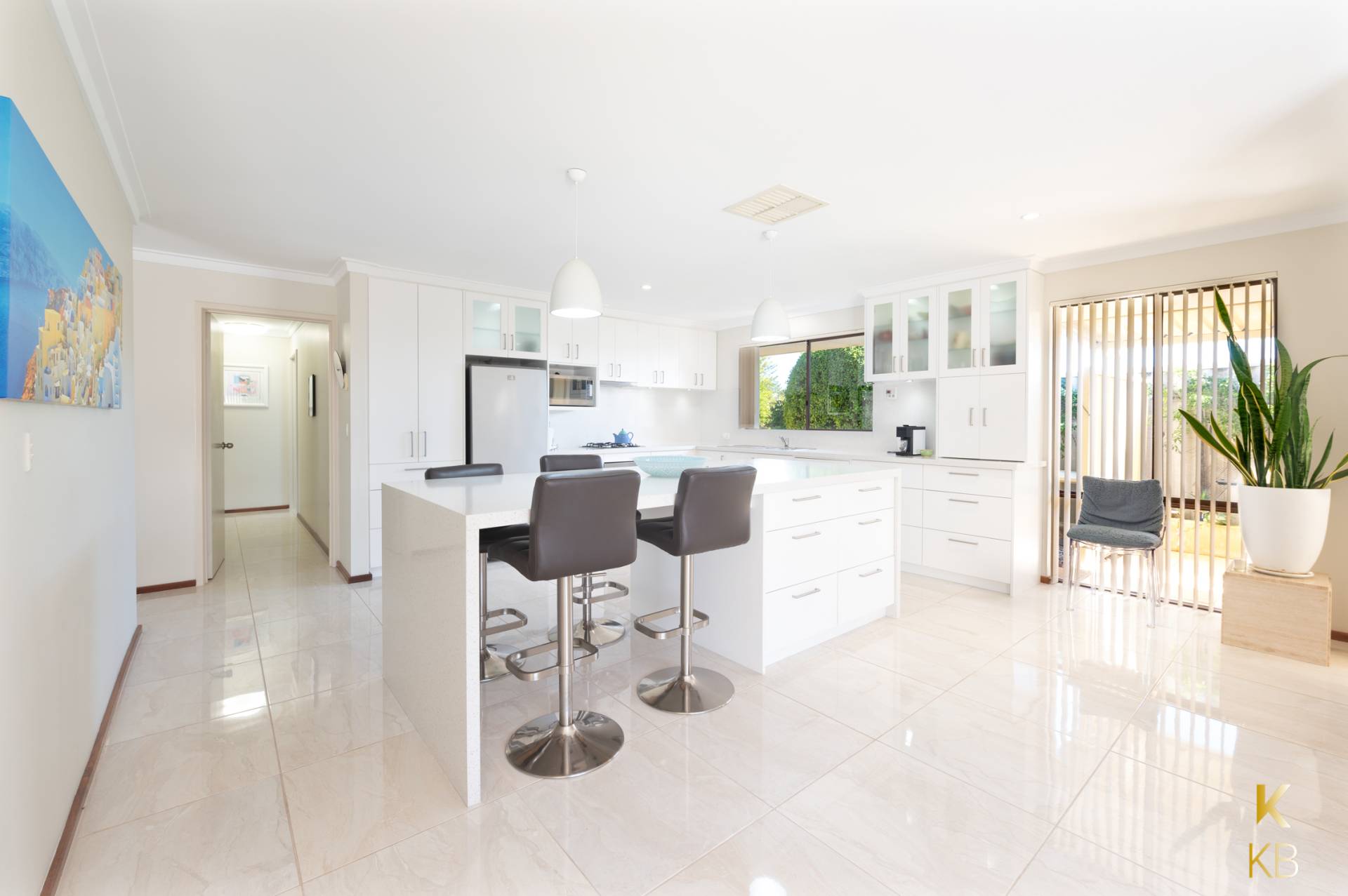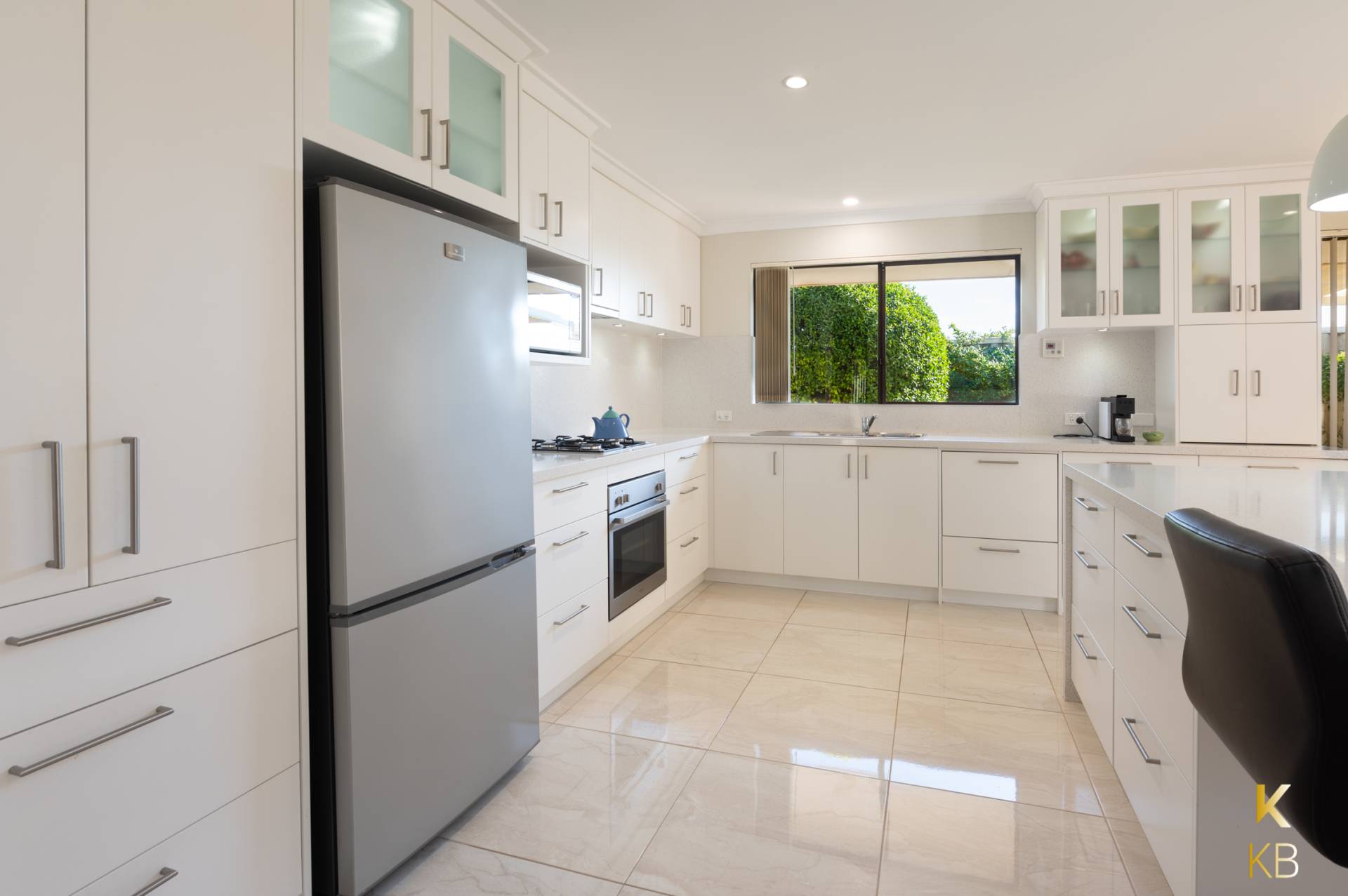This 3 bedroom, 2 bathroom home is immaculate.  It's light, sunny, and tastefully decorated throughout in neutral colours.  The highly polished floor tiles in the living and kitchen areas are striking.  You'll be drawn in by the fabulous kitchen with a large stone benchtop/breakfast bar and overlooks the lounge with study nook.  Separate lounge area, again with striking floor tiling, provides additional living with TV and contemporary built in shelving.