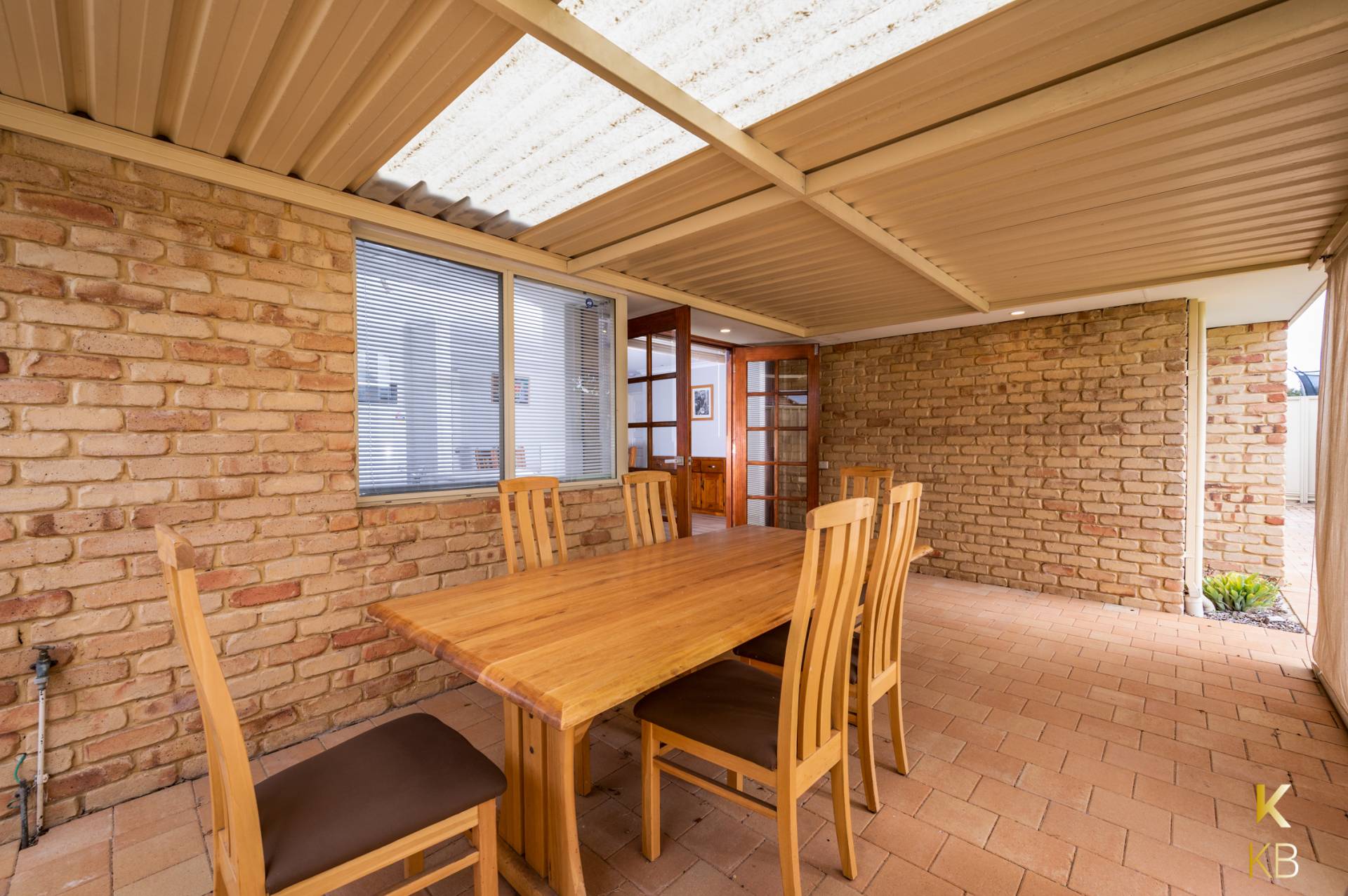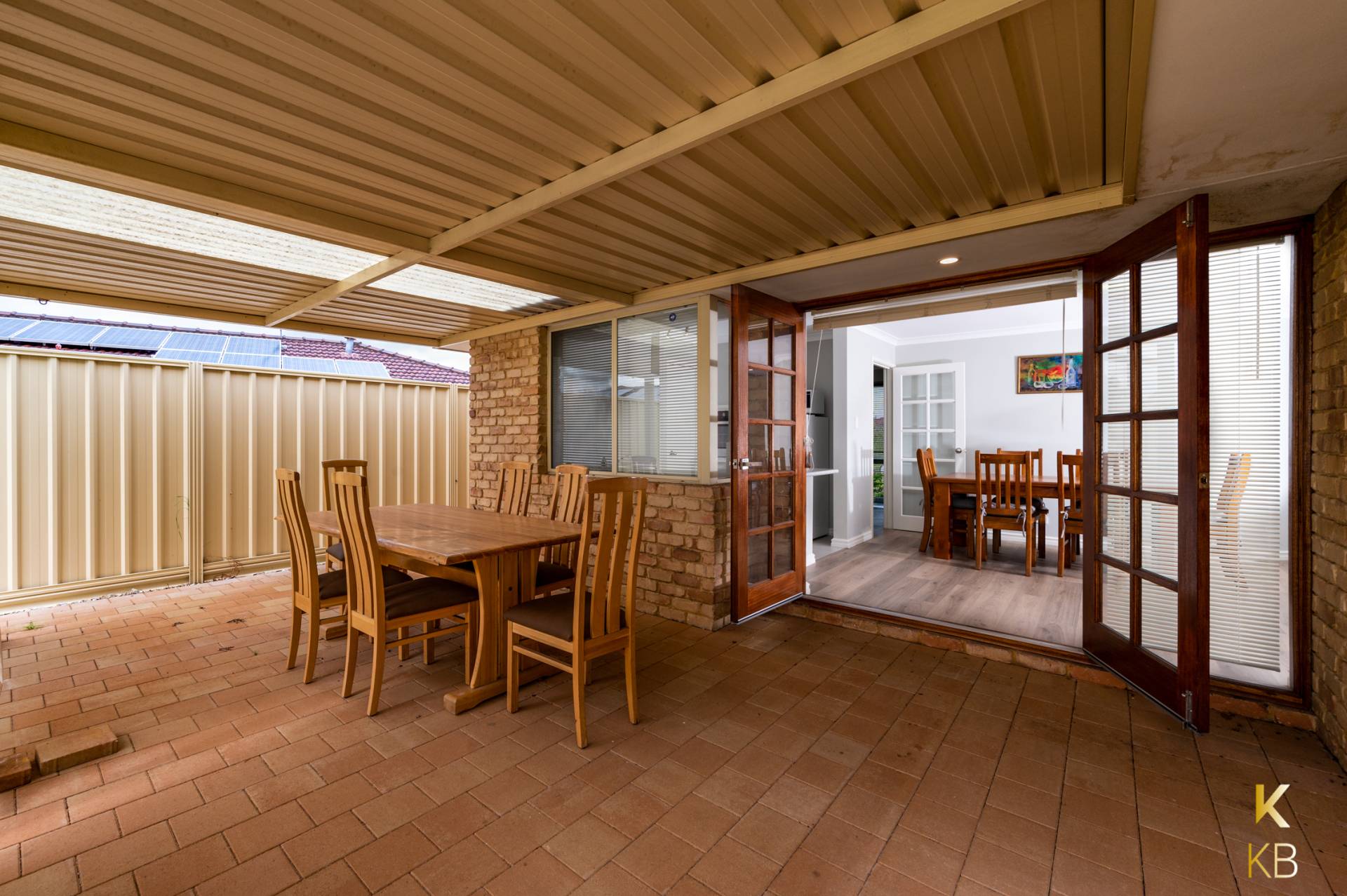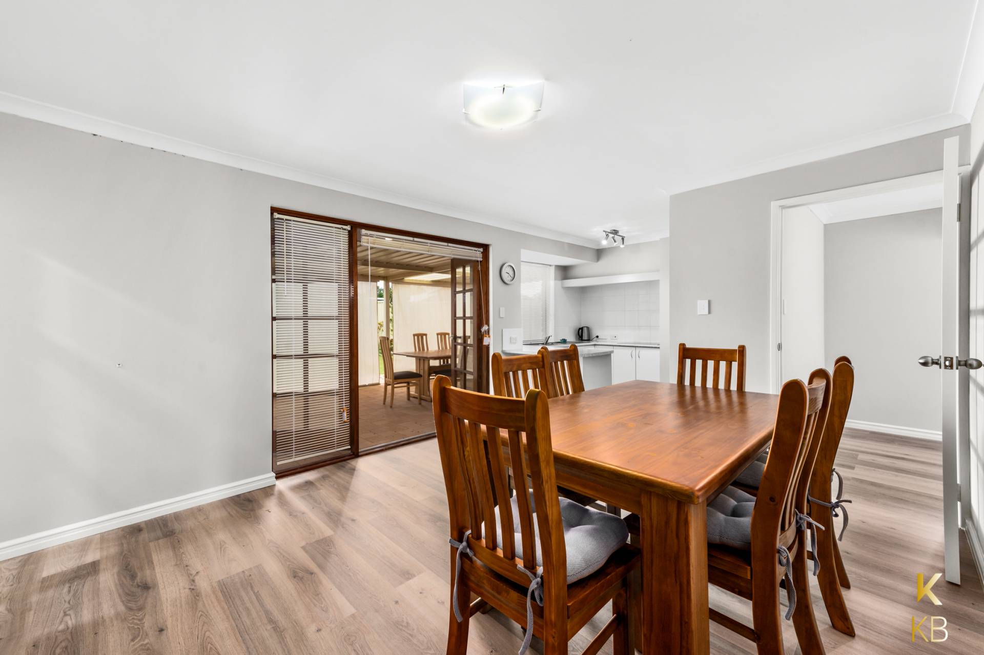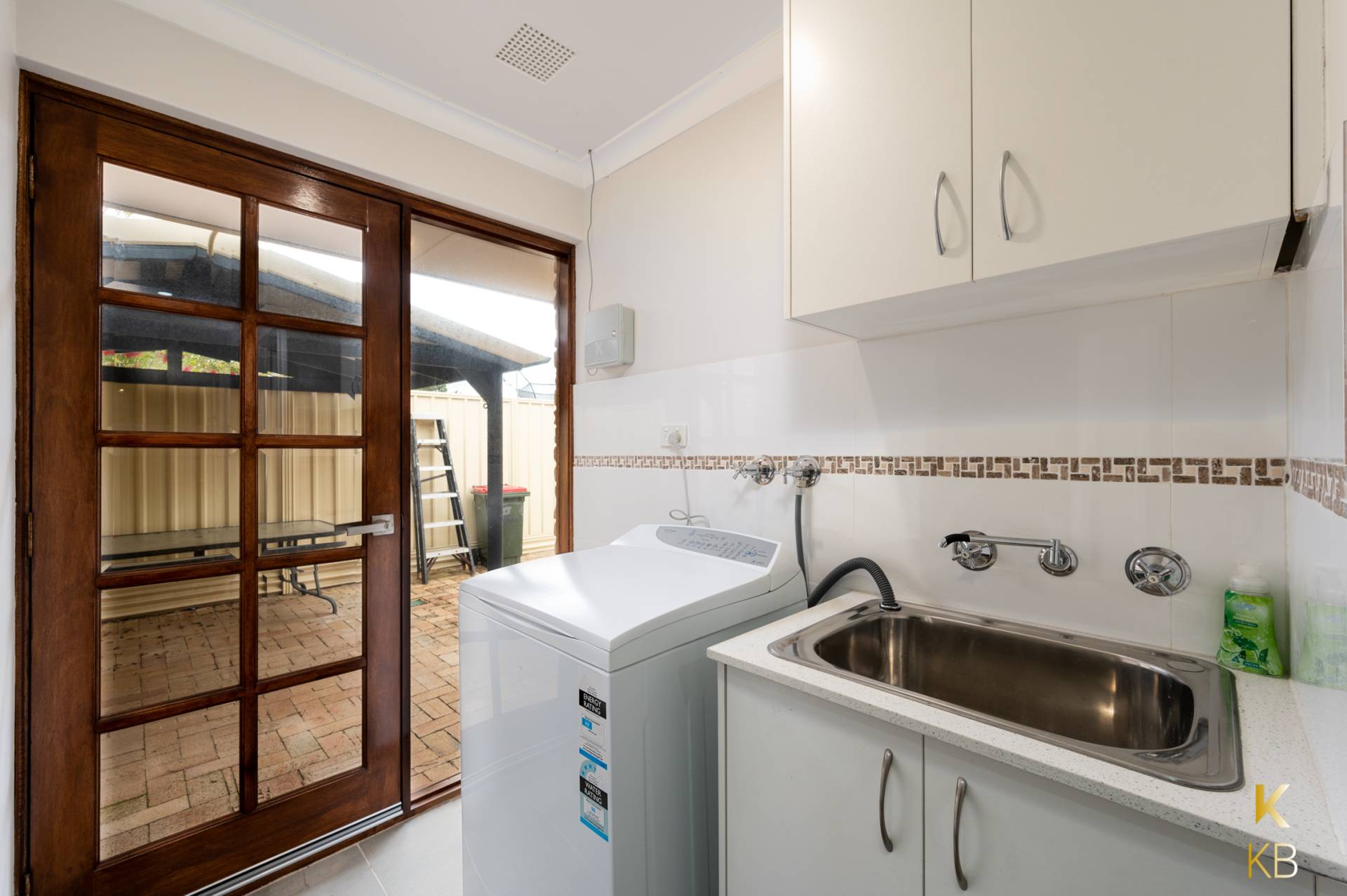 The kitchen with tiled floor offers plenty of cupboard space with new benchtop and fridge recess.  The dining area overlooks the garden with feature French double doors opening out to the undercover patio.  Generous living area has space for a small home office/ play area and benefits from R/C  heating or cooling.  Master bedroom has ceiling fan with ensuite that offers a bath as well as separate shower and tiled floor.  Two single bedrooms both with BIR and one with a ceiling fan.  The laundry has additional storage space, a large sink and the nicest door and window you'll probably see in any laundry.  Conveniently it opens out to a small courtyard and external storage room.