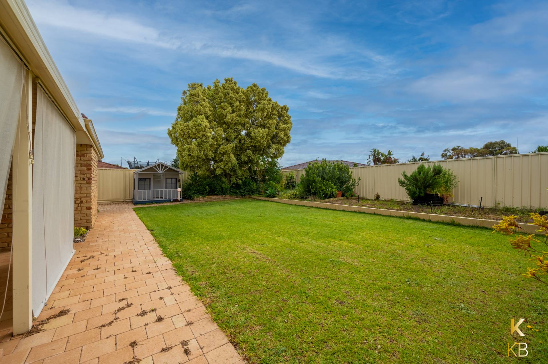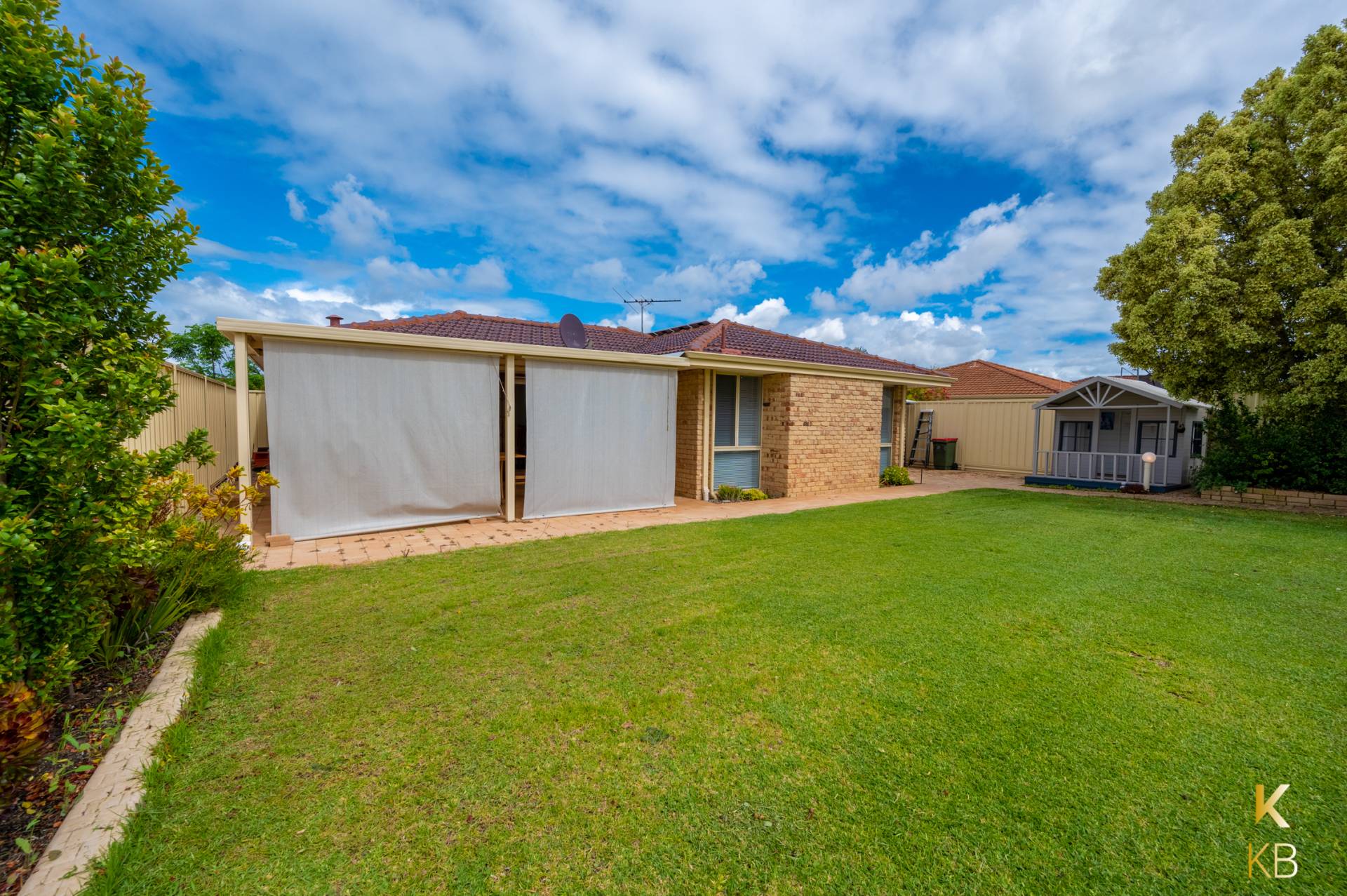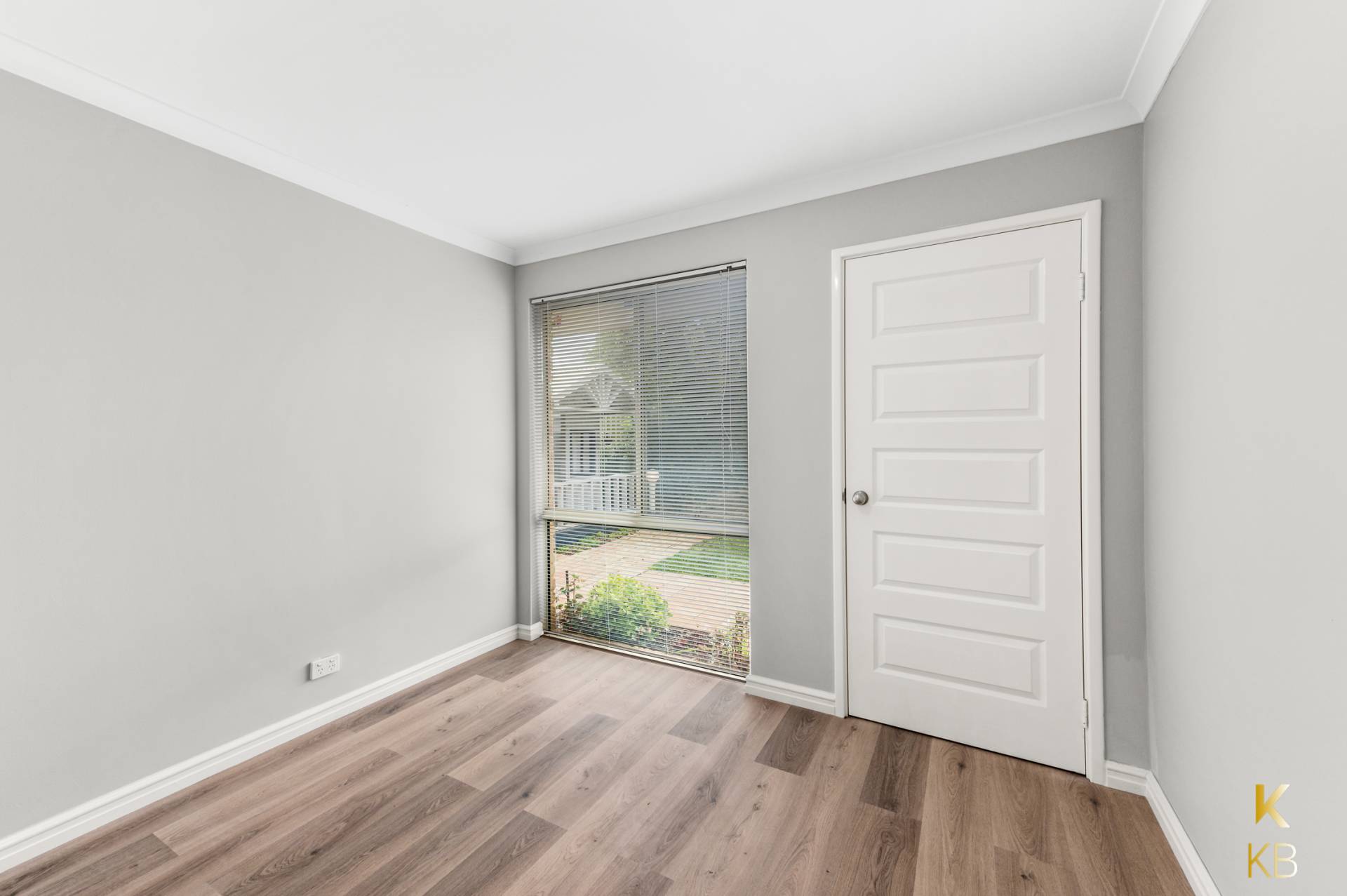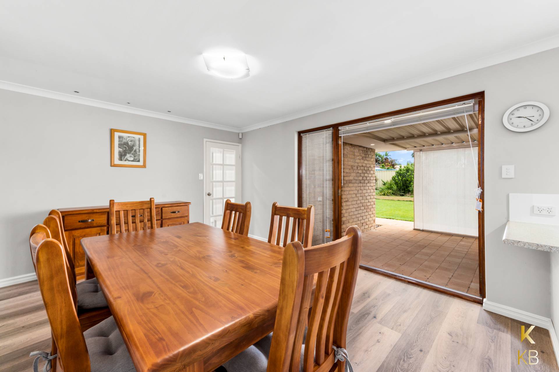 The kitchen with tiled floor offers plenty of cupboard space with new benchtop and fridge recess.  The dining area overlooks the garden with feature French double doors opening out to the undercover patio.  Generous living area has space for a small home office/ play area and benefits from R/C  heating or cooling.  Master bedroom has ceiling fan with ensuite that offers a bath as well as separate shower and tiled floor.  Two single bedrooms both with BIR and one with a ceiling fan.  The laundry has additional storage space, a large sink and the nicest door and window you'll probably see in any laundry.  Conveniently it opens out to a small courtyard and external storage room.